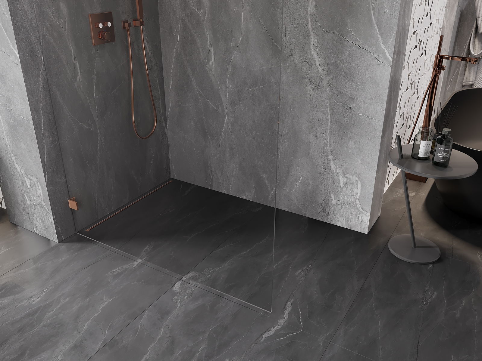 Mexen Lunar L ścianka prysznicowa Walk-in lewa 90 x 200 cm, transparent 8 mm, miedź szczotkowana - 830L-090-000-65-00-L
