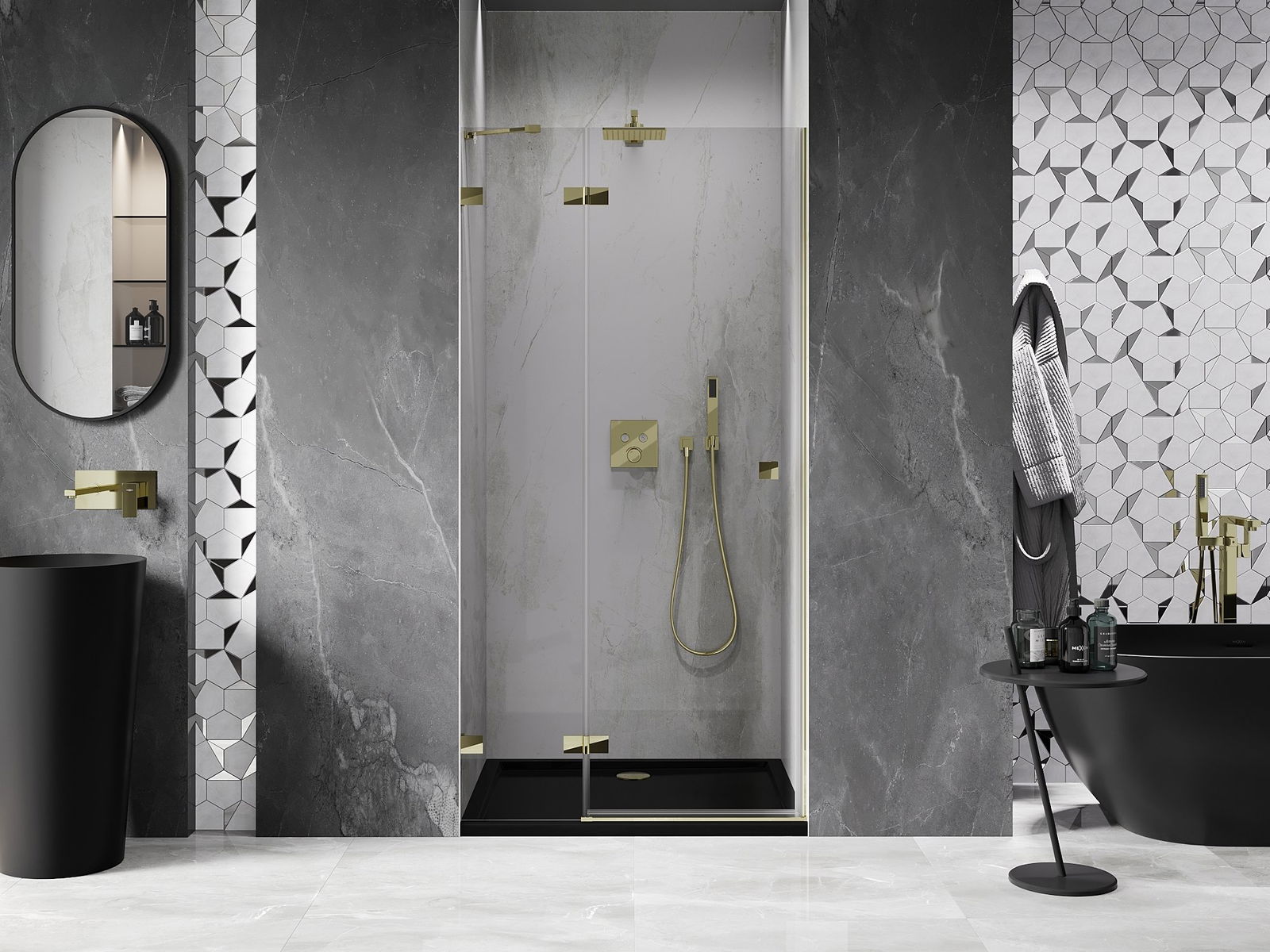 Mexen Lunar drzwi prysznicowe uchylne lewe 100 cm, transparent, złote - 834-100-000-50-00-L