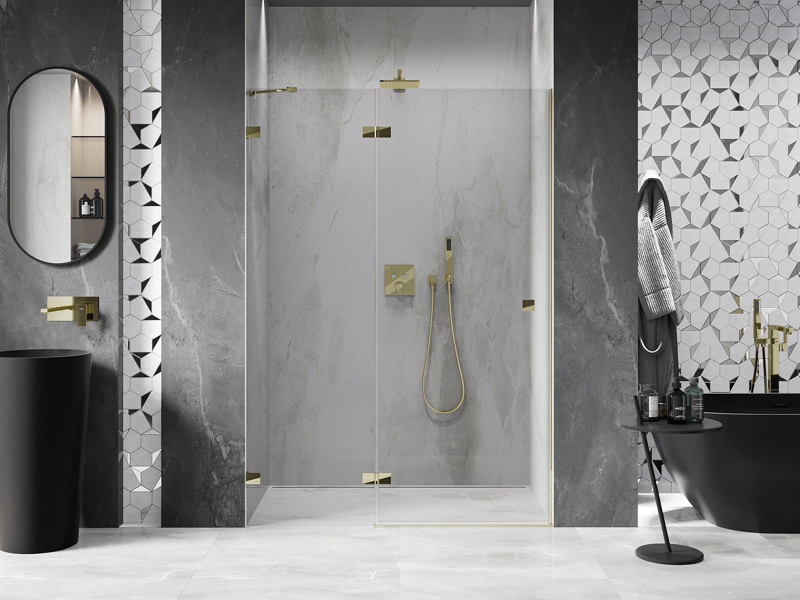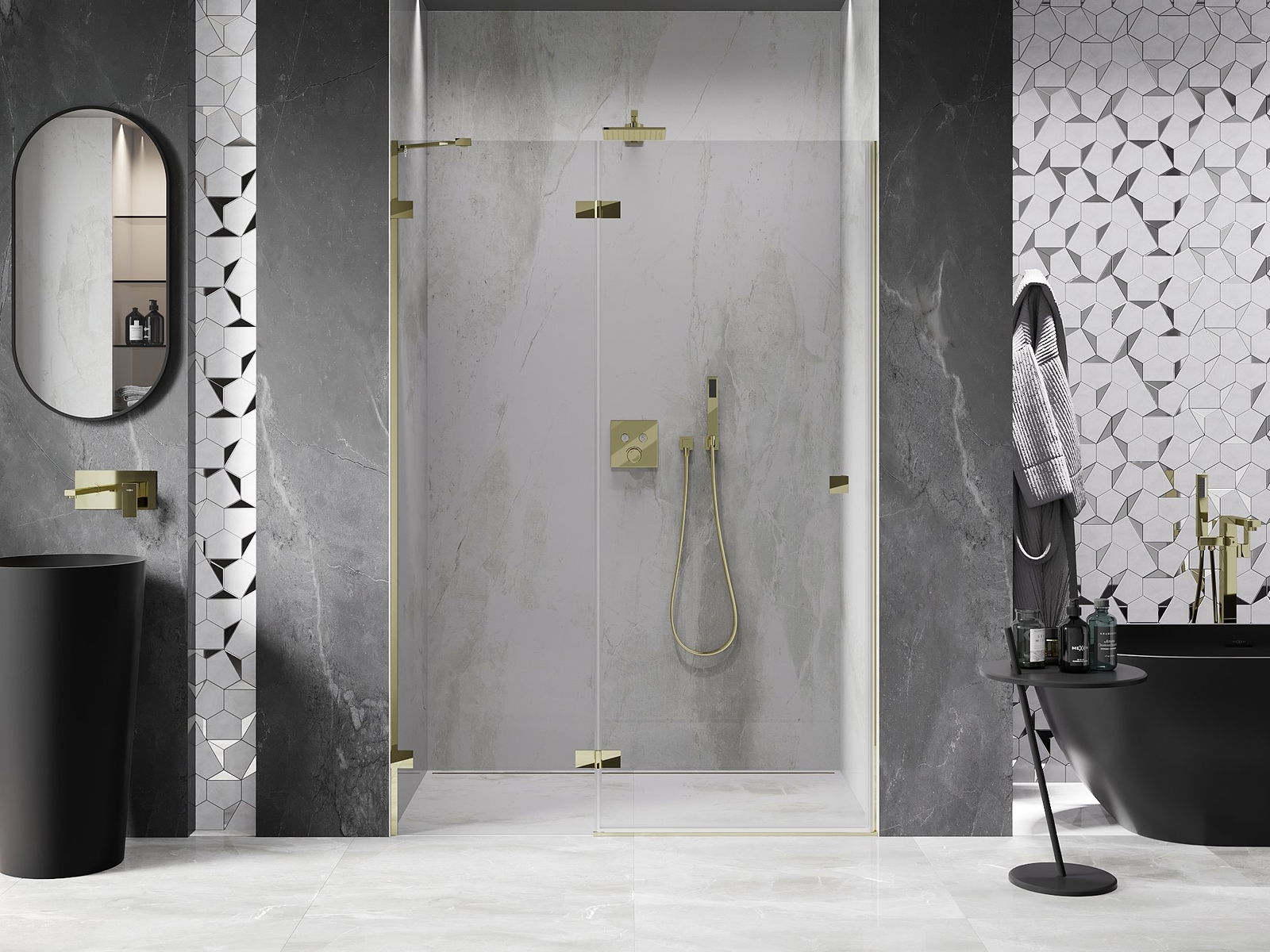 Mexen Lunar drzwi prysznicowe uchylne lewe 130 cm, transparent, złote - 834-130-000-50-00-L
