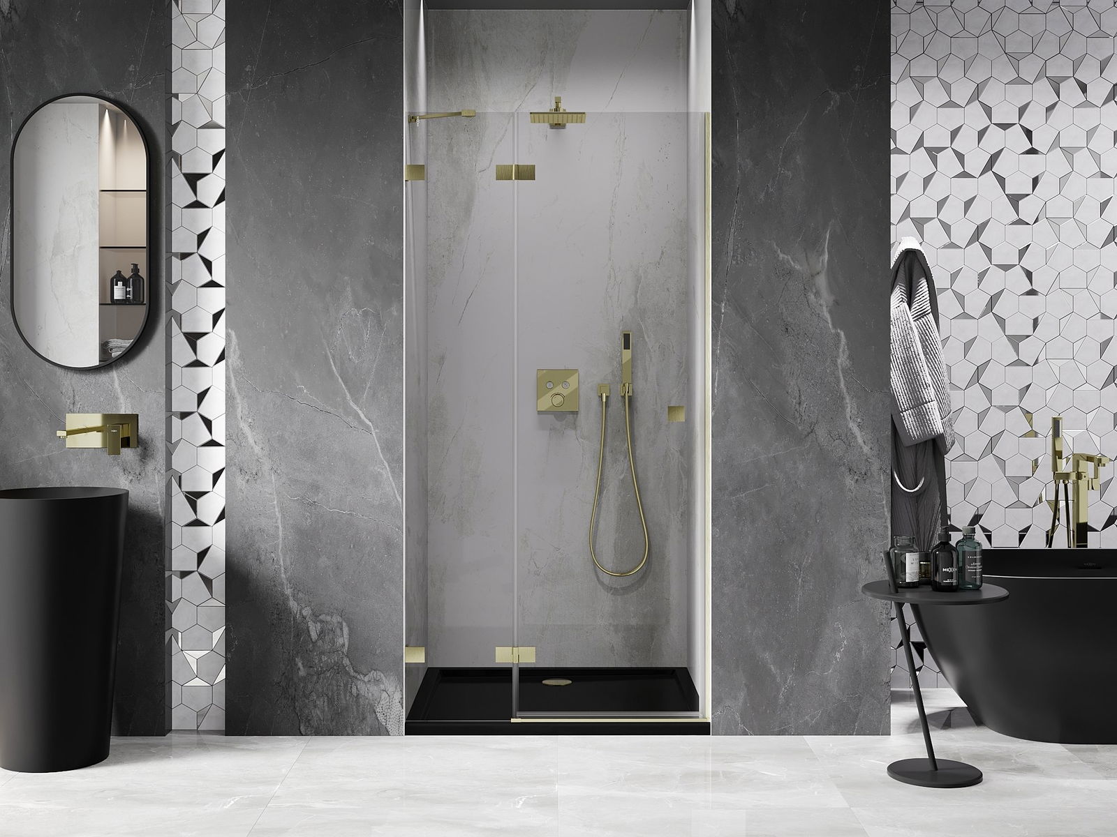 Klamry i zawiasy zostały wykonane z bardzo trwałego mosiądzu, a dodatkowo tworzą zlicowaną taflę szkła. Jest to doskonały wybór, który łączy elegancję, trwałość i nowoczesny design. Dzięki takim rozwiązaniom prysznic zyskuje na estetyce, a jednocześnie ułatwiają utrzymanie czystości.