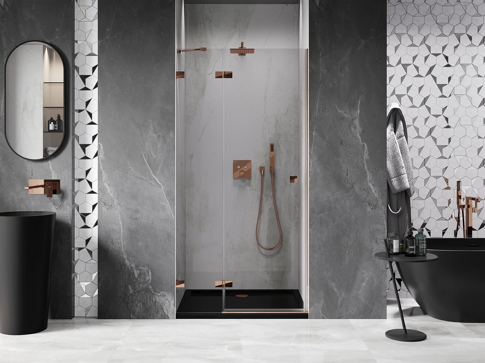 Mexen Lunar drzwi prysznicowe uchylne lewe 110 cm, transparent, różowe złoto - 834-110-000-60-00-L
