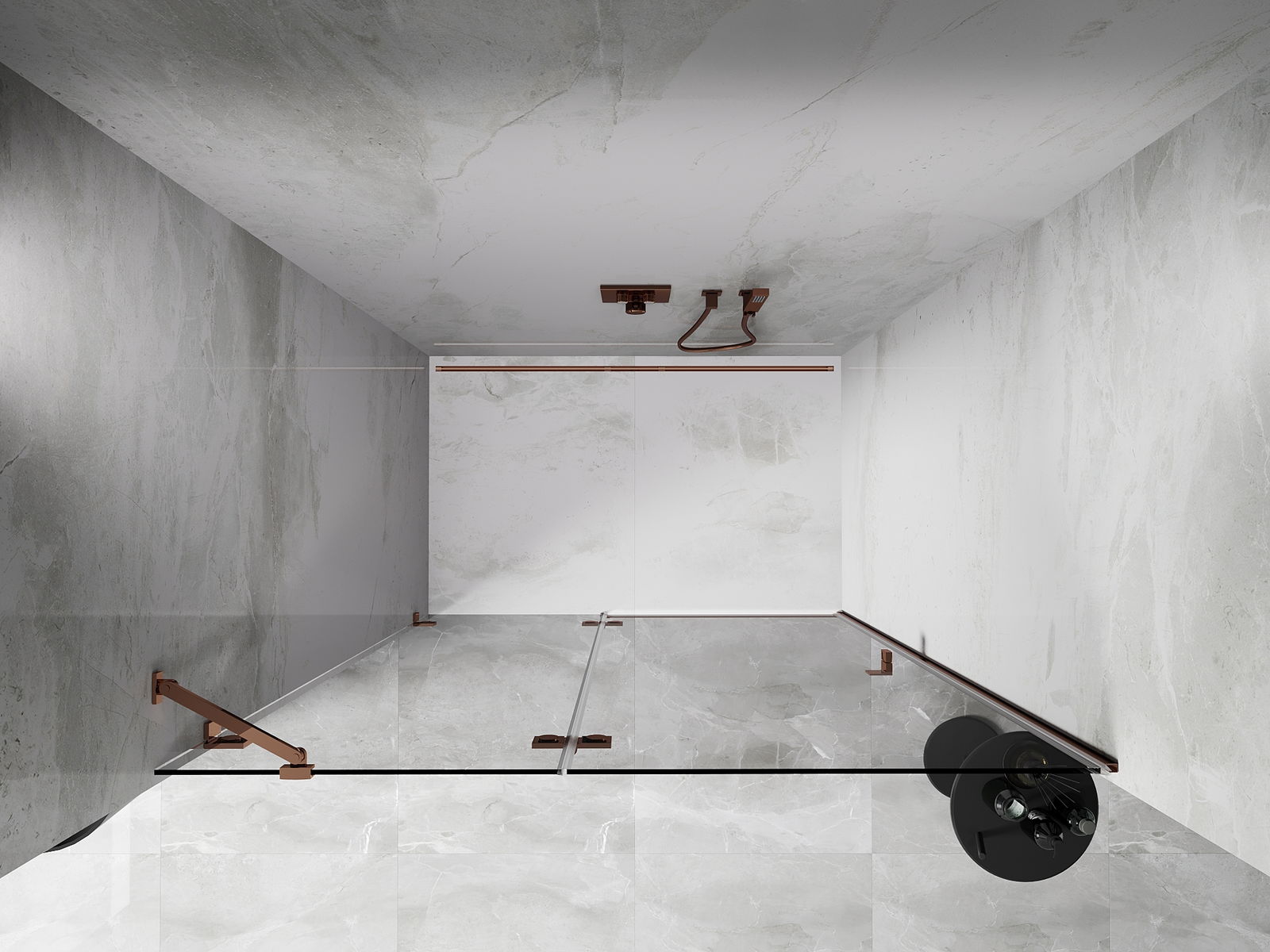 Mexen Lunar drzwi prysznicowe uchylne lewe 135 cm, transparent, różowe złoto - 834-135-000-60-00-L