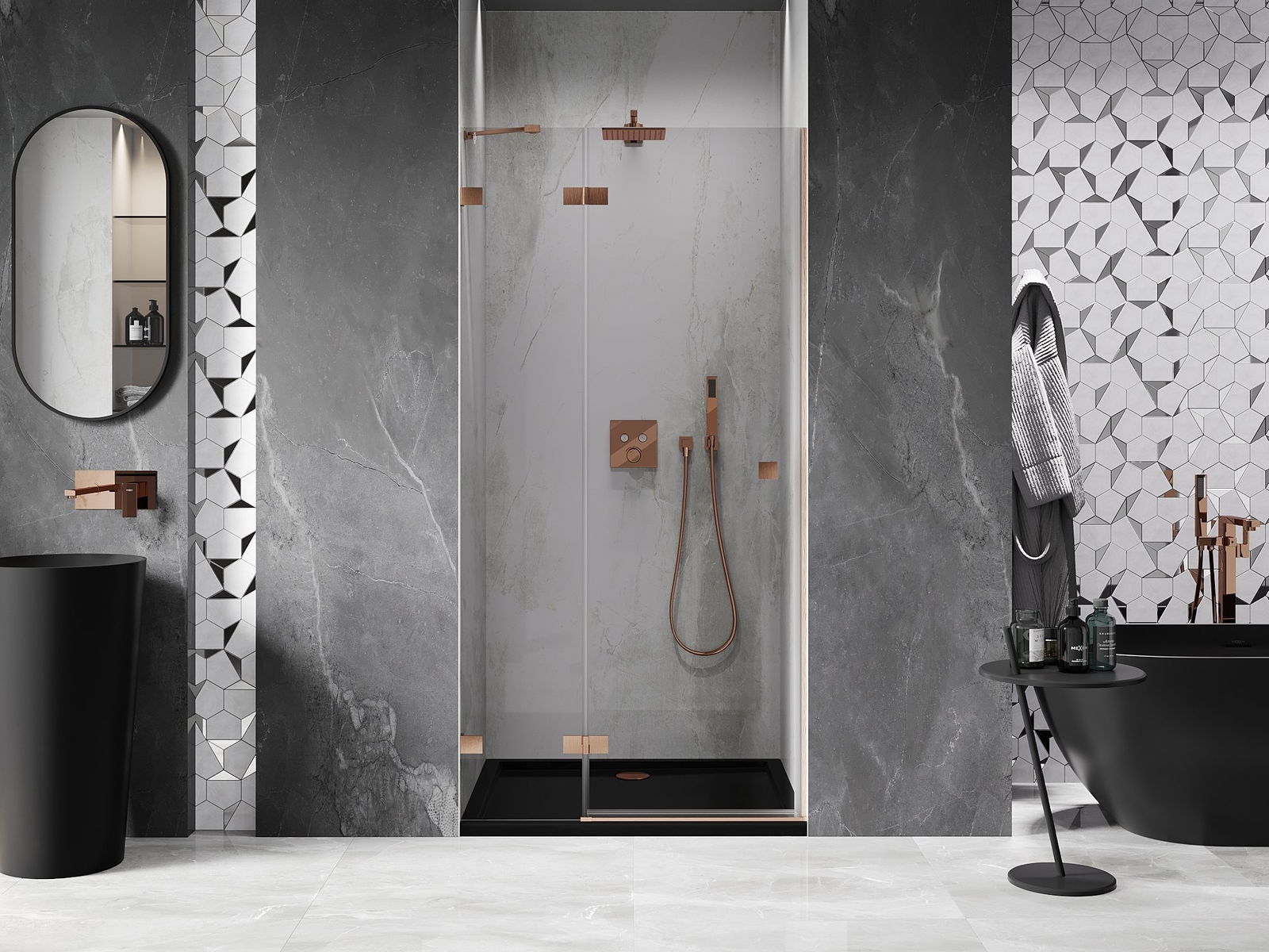 Mexen Lunar drzwi prysznicowe uchylne lewe 70 cm, transparent, miedź szczotkowana - 834-070-000-65-00-L