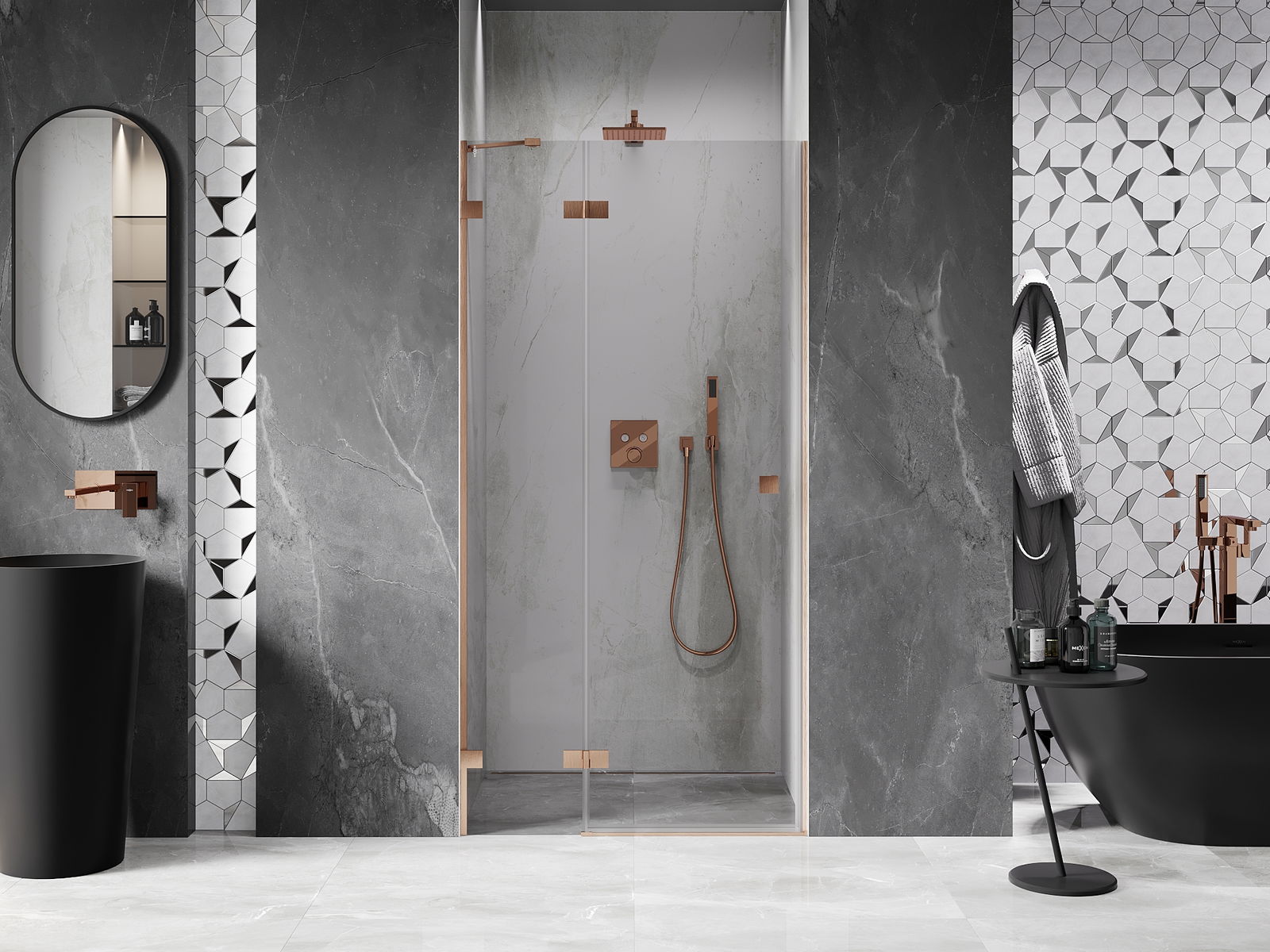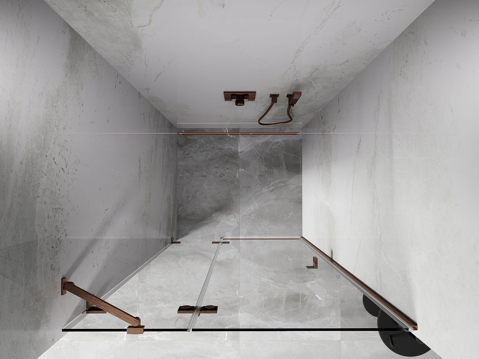 Mexen Lunar drzwi prysznicowe uchylne lewe 115 cm, transparent, miedź szczotkowana - 834-115-000-65-00-L