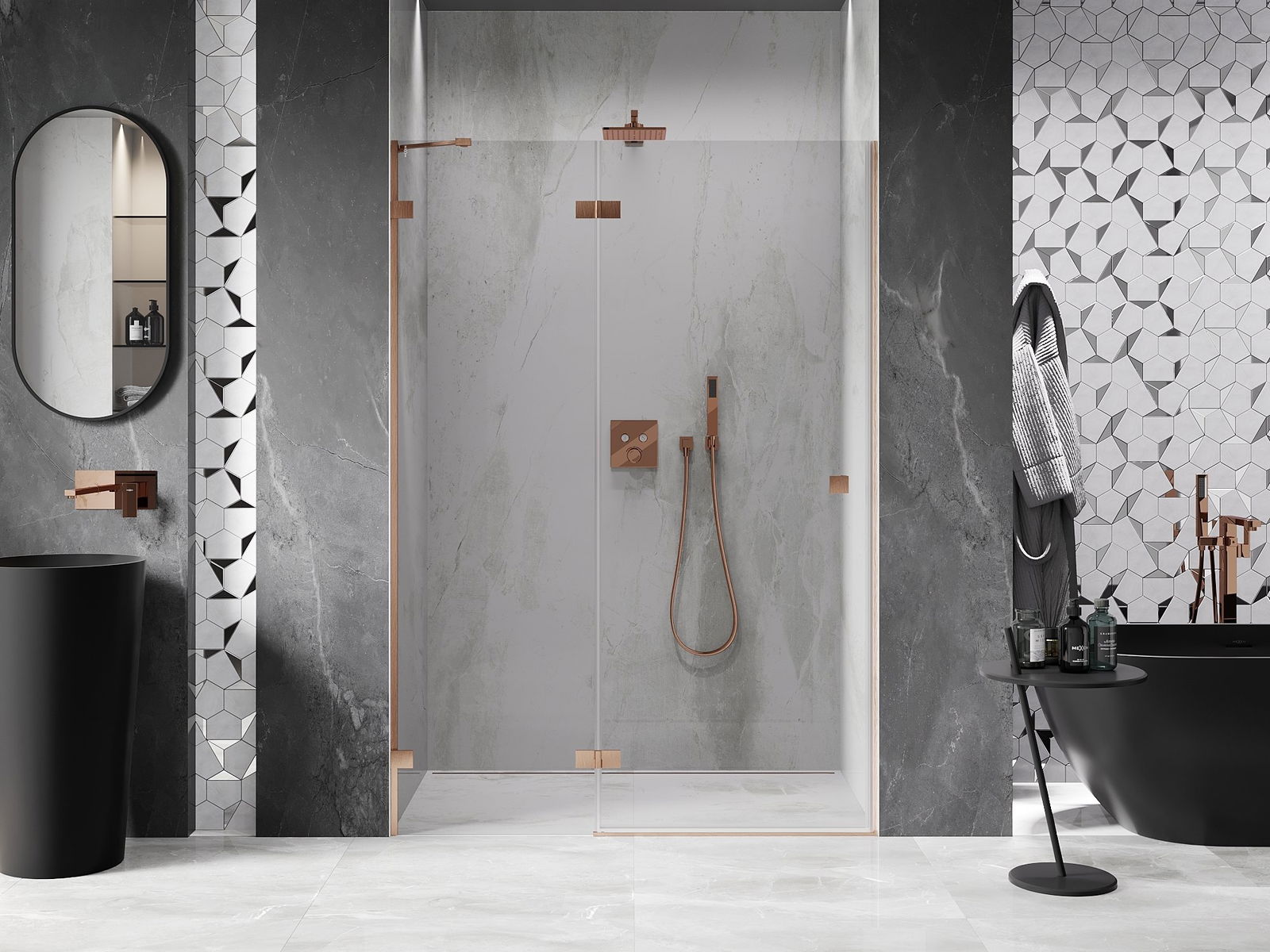 Mexen Lunar drzwi prysznicowe uchylne lewe 135 cm, transparent, miedź szczotkowana - 834-135-000-65-00-L