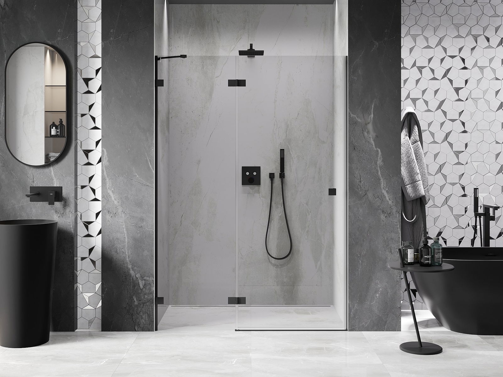 Mexen Lunar drzwi prysznicowe uchylne lewe 135 cm, transparent, czarne - 834-135-000-70-00-L