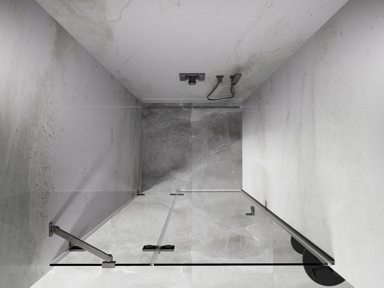 Klamry i zawiasy zostały wykonane z bardzo trwałego mosiądzu, a dodatkowo tworzą zlicowaną taflę szkła. Jest to doskonały wybór, który łączy elegancję, trwałość i nowoczesny design. Dzięki takim rozwiązaniom prysznic zyskuje na estetyce, a jednocześnie ułatwiają utrzymanie czystości.