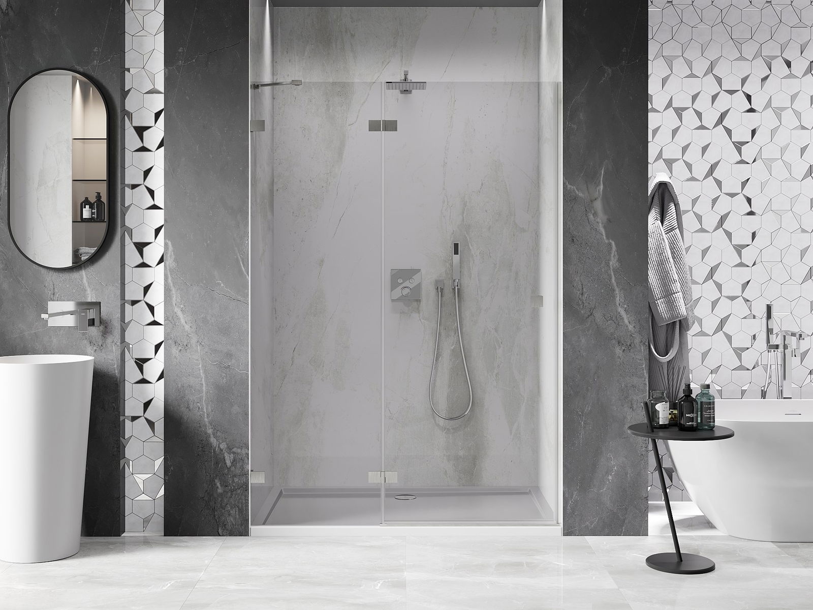 Klamry i zawiasy zostały wykonane z bardzo trwałego mosiądzu, a dodatkowo tworzą zlicowaną taflę szkła. Jest to doskonały wybór, który łączy elegancję, trwałość i nowoczesny design. Dzięki takim rozwiązaniom prysznic zyskuje na estetyce, a jednocześnie ułatwiają utrzymanie czystości.