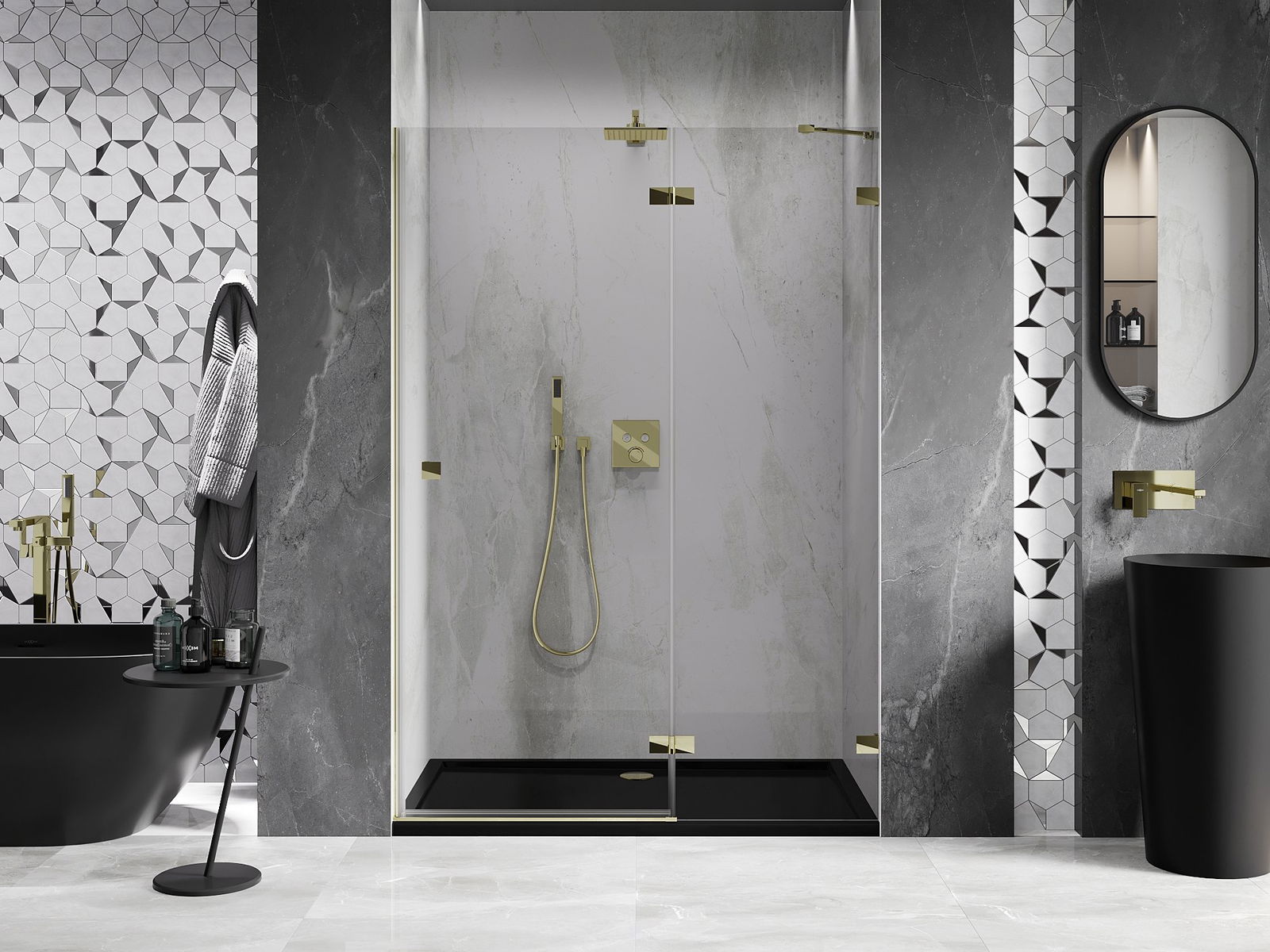 Mexen Lunar drzwi prysznicowe uchylne prawe 140 cm, transparent, złote - 834-140-000-50-00-P