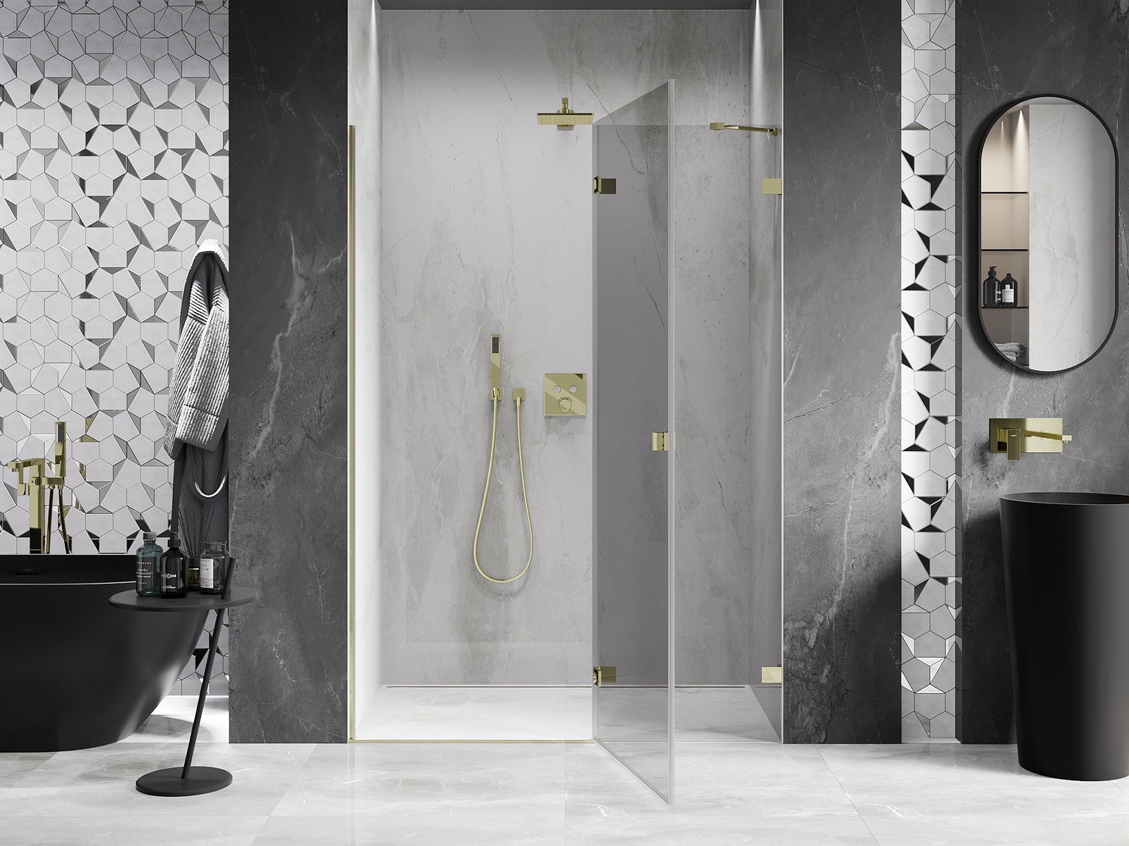Klamry i zawiasy zostały wykonane z bardzo trwałego mosiądzu, a dodatkowo tworzą zlicowaną taflę szkła. Jest to doskonały wybór, który łączy elegancję, trwałość i nowoczesny design. Dzięki takim rozwiązaniom prysznic zyskuje na estetyce, a jednocześnie ułatwiają utrzymanie czystości.