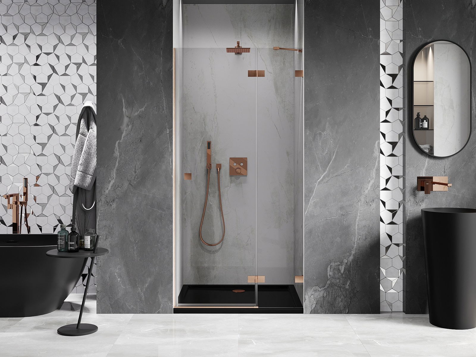 Mexen Lunar drzwi prysznicowe uchylne prawa 110 cm, transparent, miedź szczotkowana - 834-110-000-65-00-P