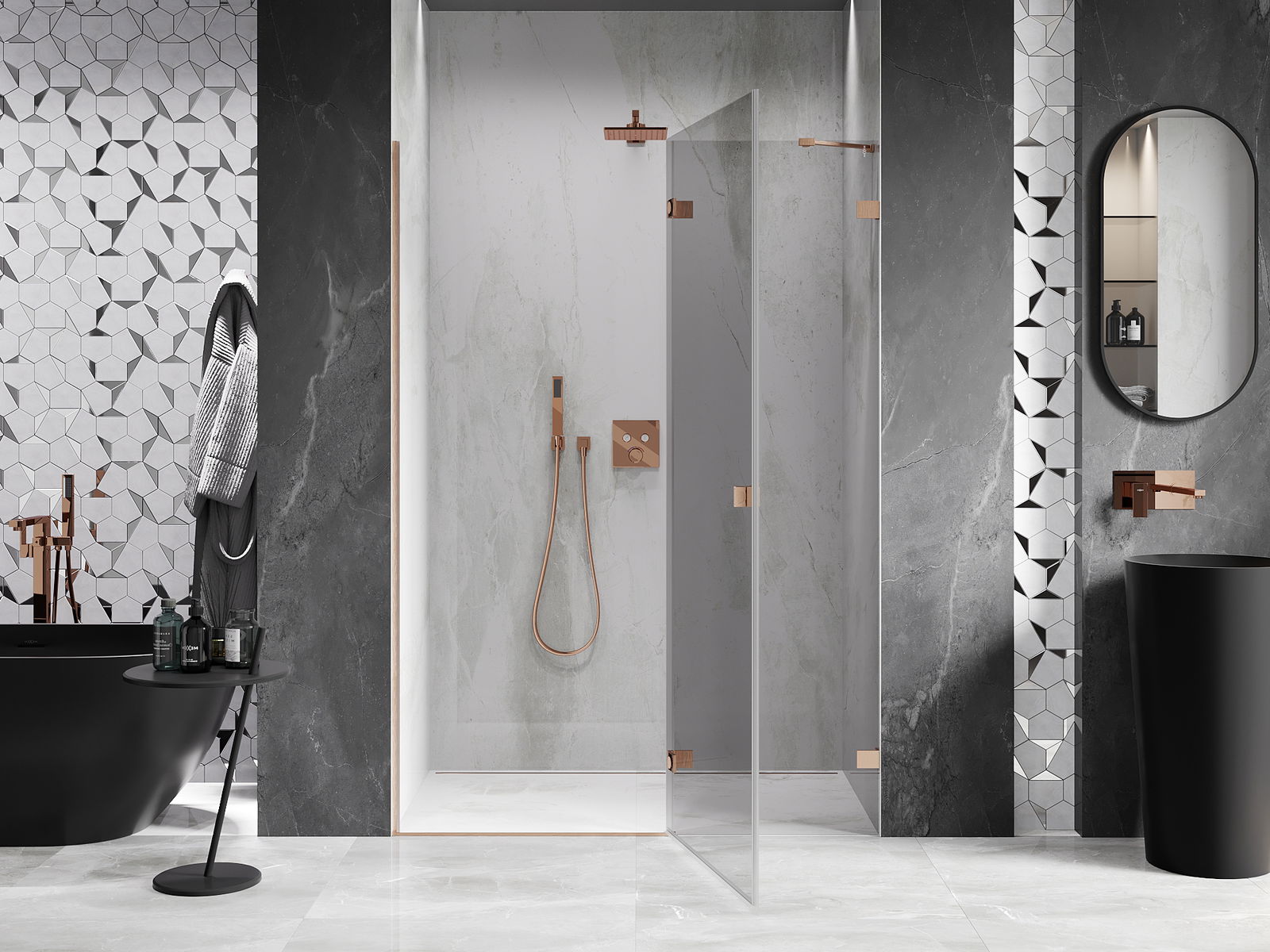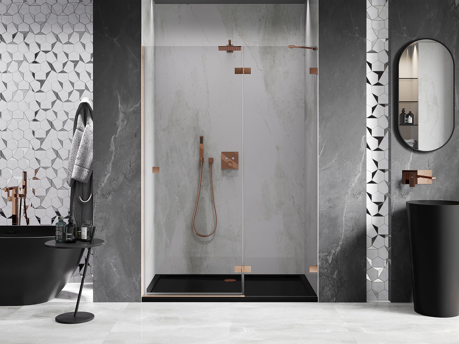 Mexen Lunar drzwi prysznicowe uchylne prawa 130 cm, transparent, miedź szczotkowana - 834-130-000-65-00-P
