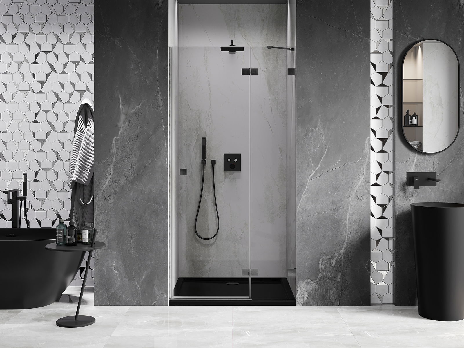 Klamry i zawiasy zostały wykonane z bardzo trwałego mosiądzu, a dodatkowo tworzą zlicowaną taflę szkła. Jest to doskonały wybór, który łączy elegancję, trwałość i nowoczesny design. Dzięki takim rozwiązaniom prysznic zyskuje na estetyce, a jednocześnie ułatwiają utrzymanie czystości.