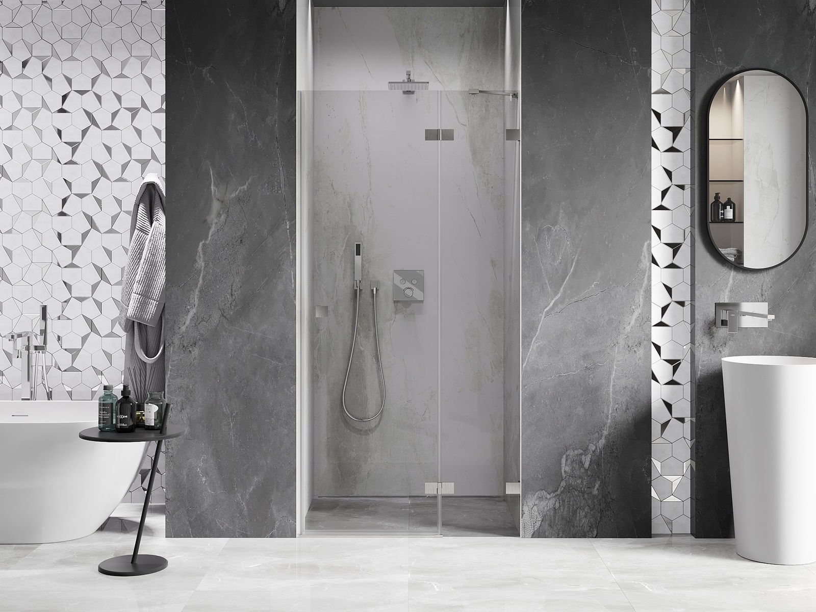 Klamry i zawiasy zostały wykonane z bardzo trwałego mosiądzu, a dodatkowo tworzą zlicowaną taflę szkła. Jest to doskonały wybór, który łączy elegancję, trwałość i nowoczesny design. Dzięki takim rozwiązaniom prysznic zyskuje na estetyce, a jednocześnie ułatwiają utrzymanie czystości.