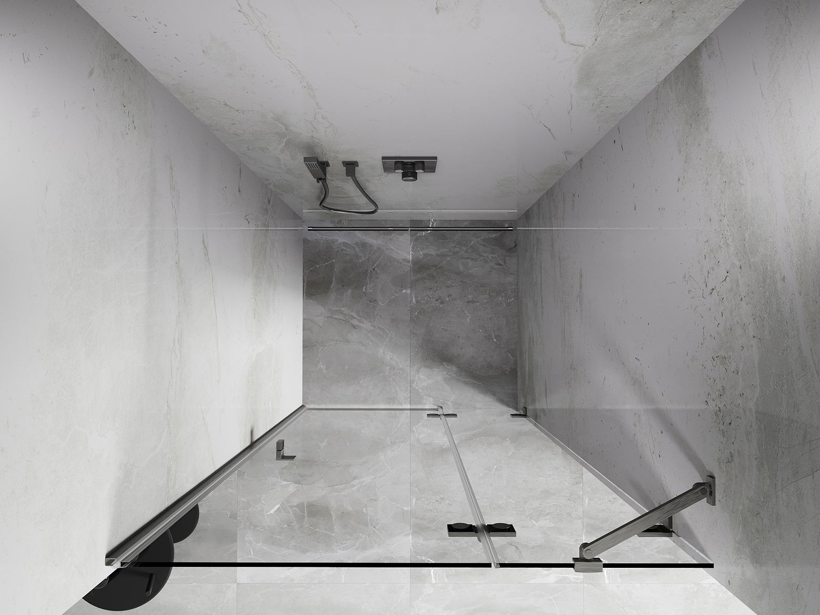 Klamry i zawiasy zostały wykonane z bardzo trwałego mosiądzu, a dodatkowo tworzą zlicowaną taflę szkła. Jest to doskonały wybór, który łączy elegancję, trwałość i nowoczesny design. Dzięki takim rozwiązaniom prysznic zyskuje na estetyce, a jednocześnie ułatwiają utrzymanie czystości.