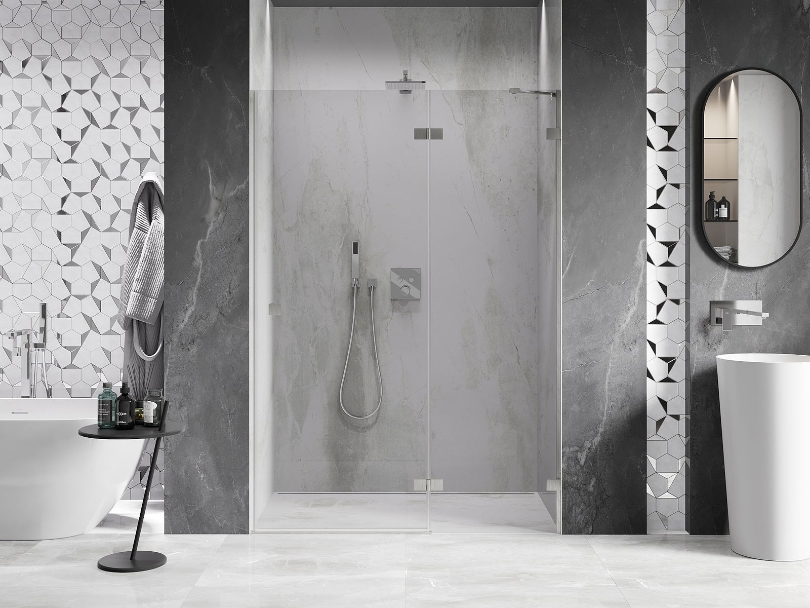 Klamry i zawiasy zostały wykonane z bardzo trwałego mosiądzu, a dodatkowo tworzą zlicowaną taflę szkła. Jest to doskonały wybór, który łączy elegancję, trwałość i nowoczesny design. Dzięki takim rozwiązaniom prysznic zyskuje na estetyce, a jednocześnie ułatwiają utrzymanie czystości.