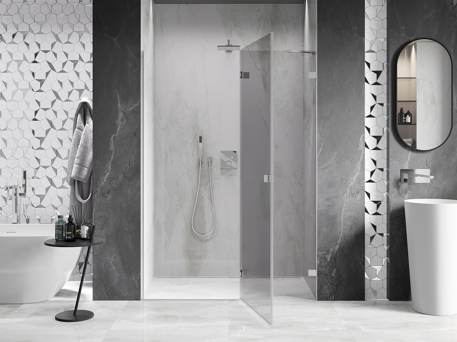 Klamry i zawiasy zostały wykonane z bardzo trwałego mosiądzu, a dodatkowo tworzą zlicowaną taflę szkła. Jest to doskonały wybór, który łączy elegancję, trwałość i nowoczesny design. Dzięki takim rozwiązaniom prysznic zyskuje na estetyce, a jednocześnie ułatwiają utrzymanie czystości.