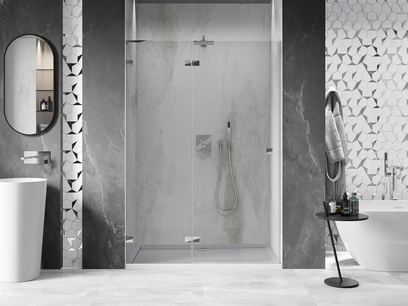 Mexen Lunar L drzwi prysznicowe uchylne lewe 130 cm, transparent, chrom - 834L-130-000-01-00-L