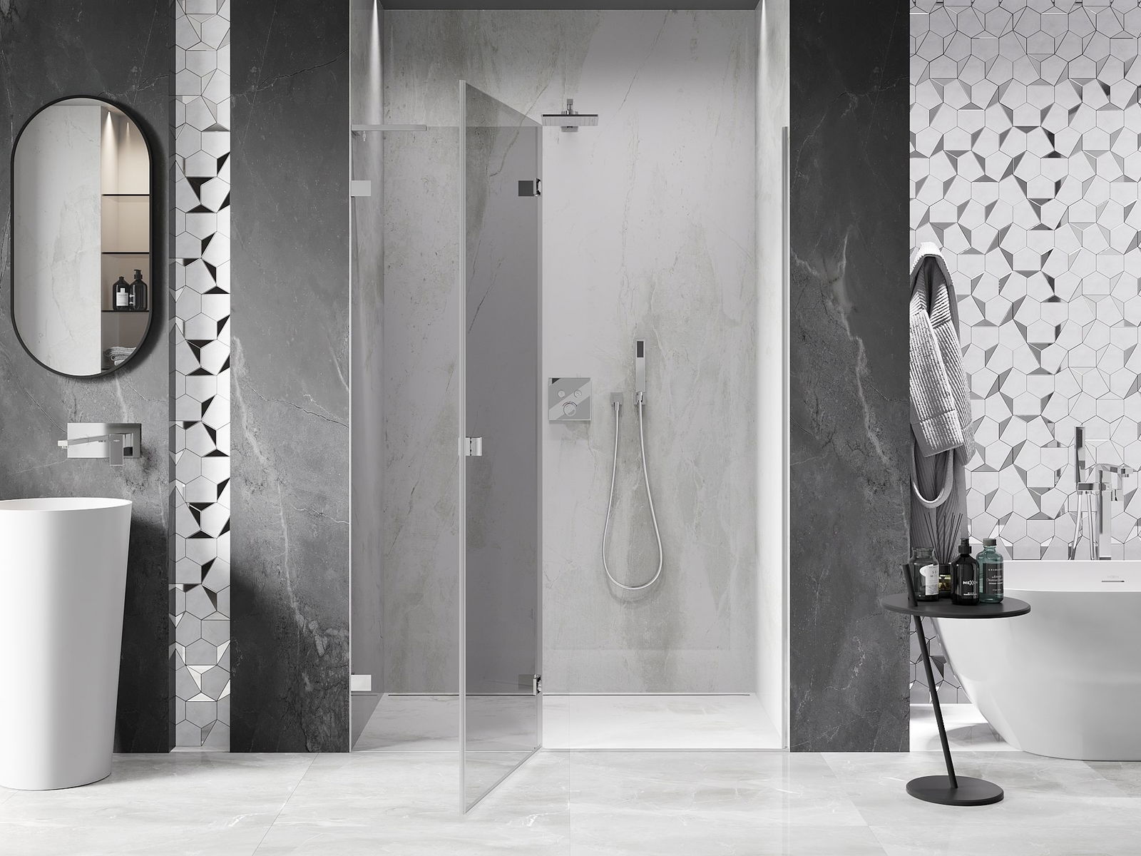 Klamry i zawiasy zostały wykonane z bardzo trwałego mosiądzu, a dodatkowo tworzą zlicowaną taflę szkła. Jest to doskonały wybór, który łączy elegancję, trwałość i nowoczesny design. Dzięki takim rozwiązaniom prysznic zyskuje na estetyce, a jednocześnie ułatwiają utrzymanie czystości.