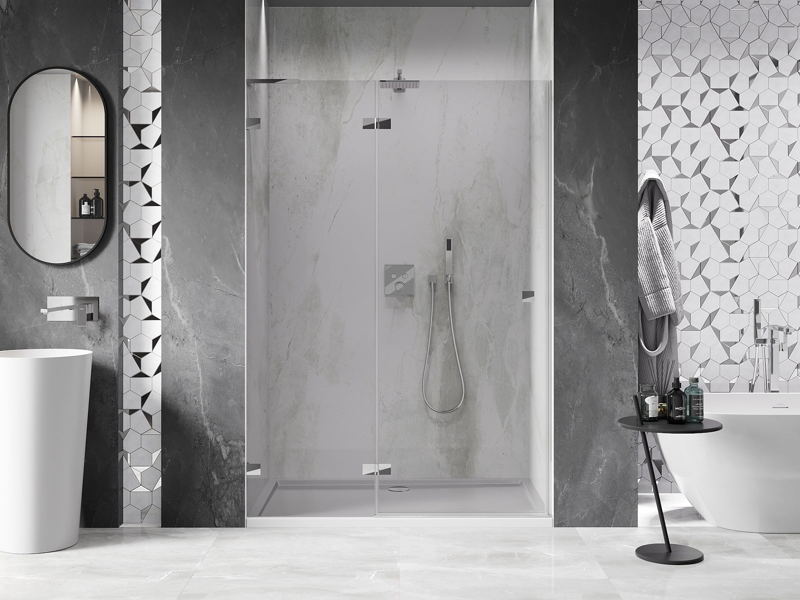 Klamry i zawiasy zostały wykonane z bardzo trwałego mosiądzu, a dodatkowo tworzą zlicowaną taflę szkła. Jest to doskonały wybór, który łączy elegancję, trwałość i nowoczesny design. Dzięki takim rozwiązaniom prysznic zyskuje na estetyce, a jednocześnie ułatwiają utrzymanie czystości.
