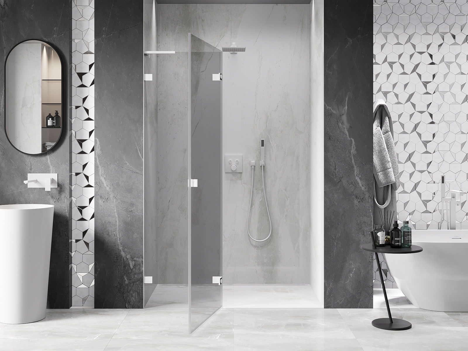 Klamry i zawiasy zostały wykonane z bardzo trwałego mosiądzu, a dodatkowo tworzą zlicowaną taflę szkła. Jest to doskonały wybór, który łączy elegancję, trwałość i nowoczesny design. Dzięki takim rozwiązaniom prysznic zyskuje na estetyce, a jednocześnie ułatwiają utrzymanie czystości.