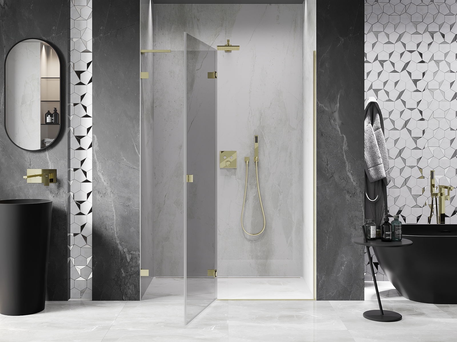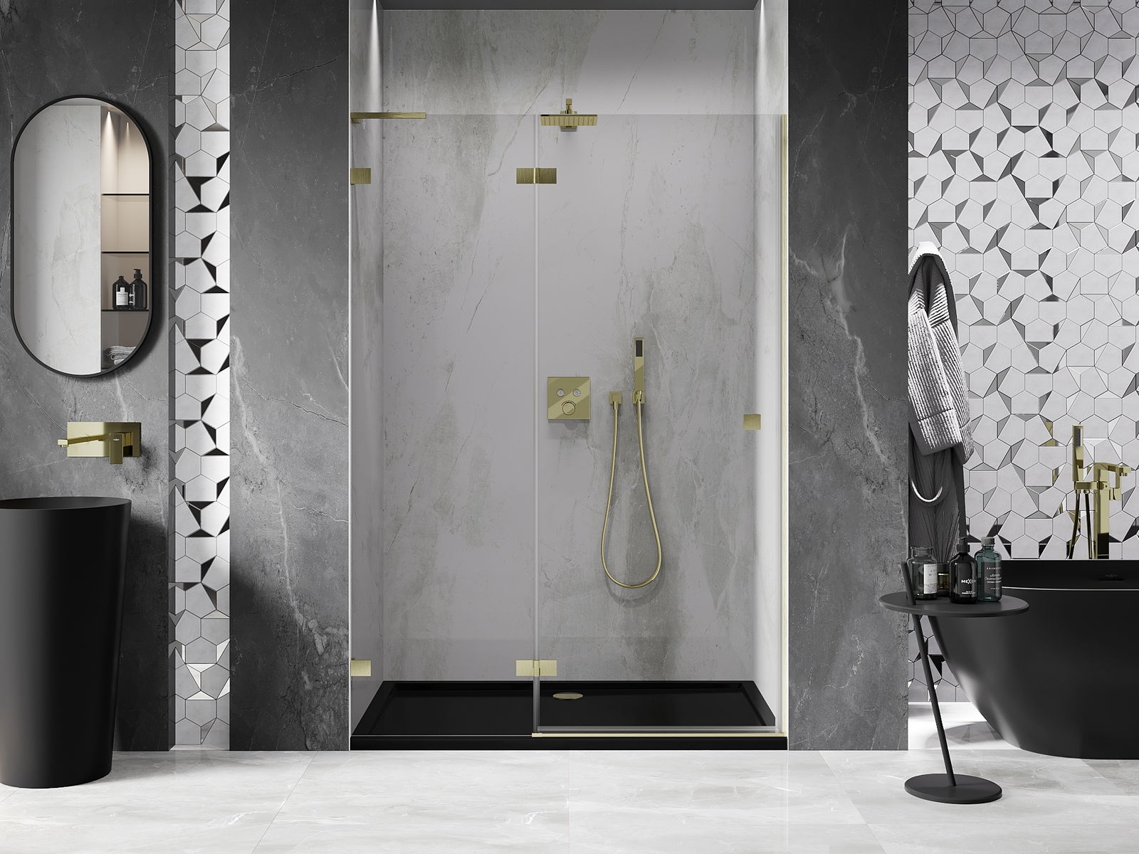 Klamry i zawiasy zostały wykonane z bardzo trwałego mosiądzu, a dodatkowo tworzą zlicowaną taflę szkła. Jest to doskonały wybór, który łączy elegancję, trwałość i nowoczesny design. Dzięki takim rozwiązaniom prysznic zyskuje na estetyce, a jednocześnie ułatwiają utrzymanie czystości.