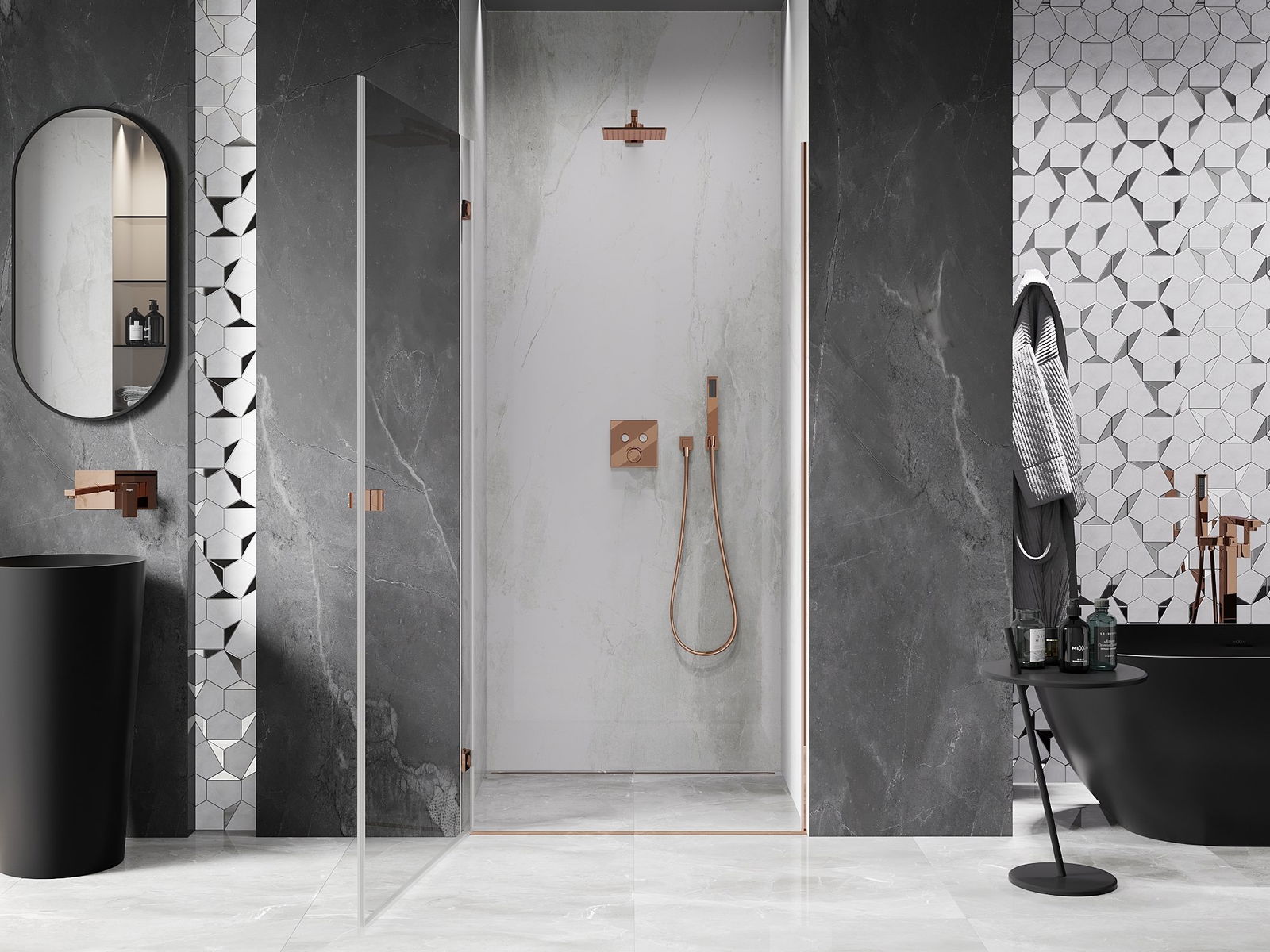 Mexen Lunar-B drzwi prysznicowe uchylne lewe 70 cm, transparent, różowe złoto - 832-070-000-60-00-L