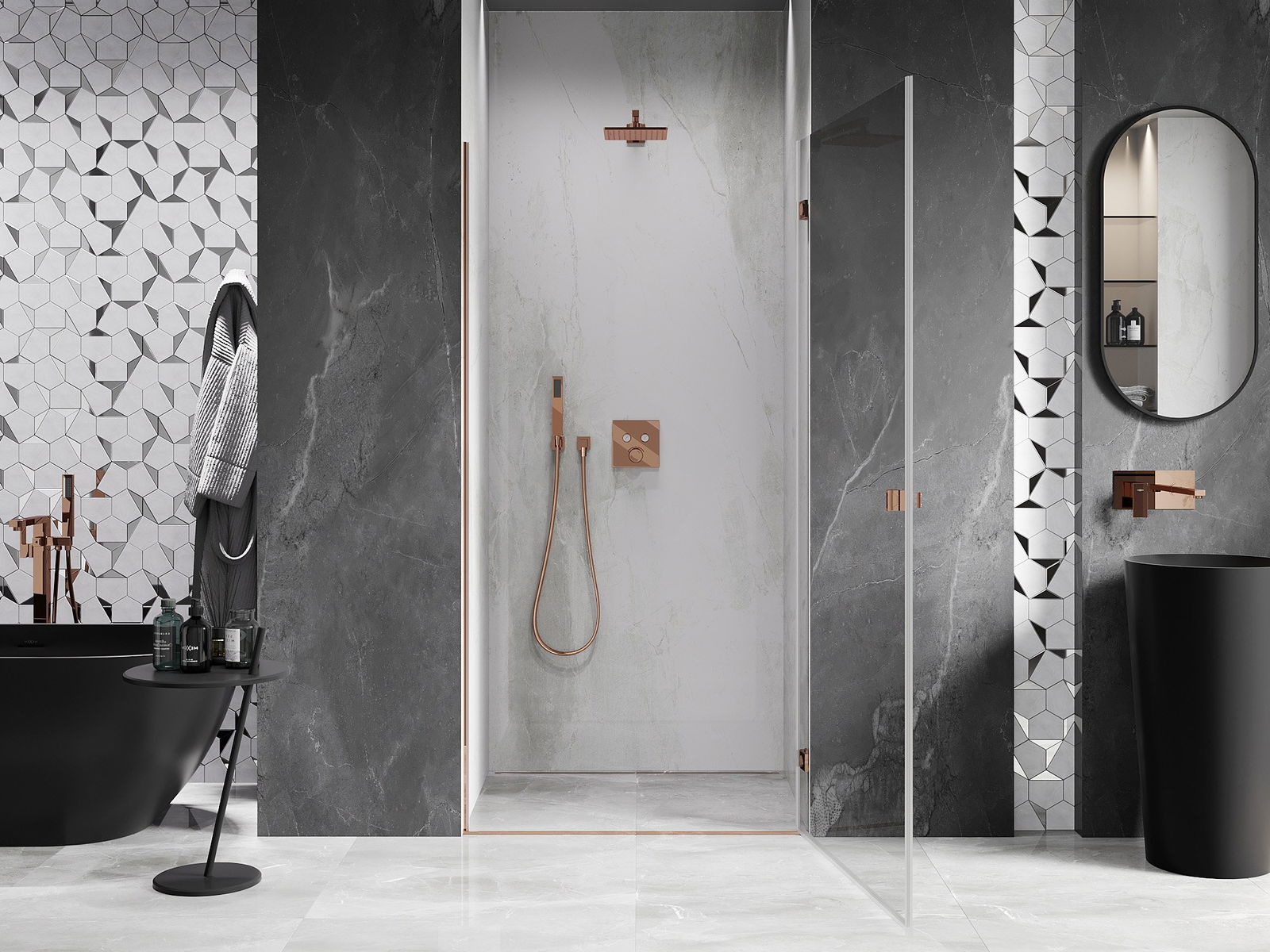 Mexen Lunar-B drzwi prysznicowe uchylne prawe 90 cm, transparent, różowe złoto - 832-090-000-60-00-P