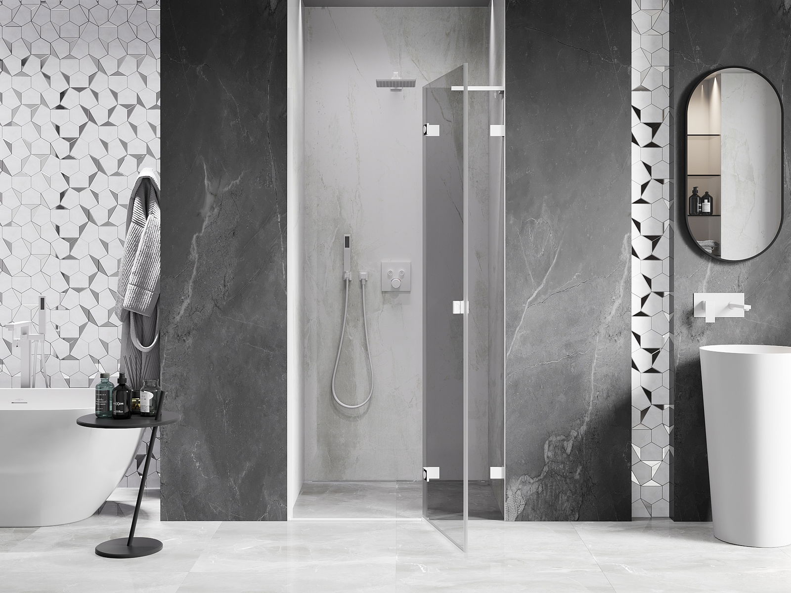 Klamry i zawiasy zostały wykonane z bardzo trwałego mosiądzu, a dodatkowo tworzą zlicowaną taflę szkła. Jest to doskonały wybór, który łączy elegancję, trwałość i nowoczesny design. Dzięki takim rozwiązaniom prysznic zyskuje na estetyce, a jednocześnie ułatwiają utrzymanie czystości.