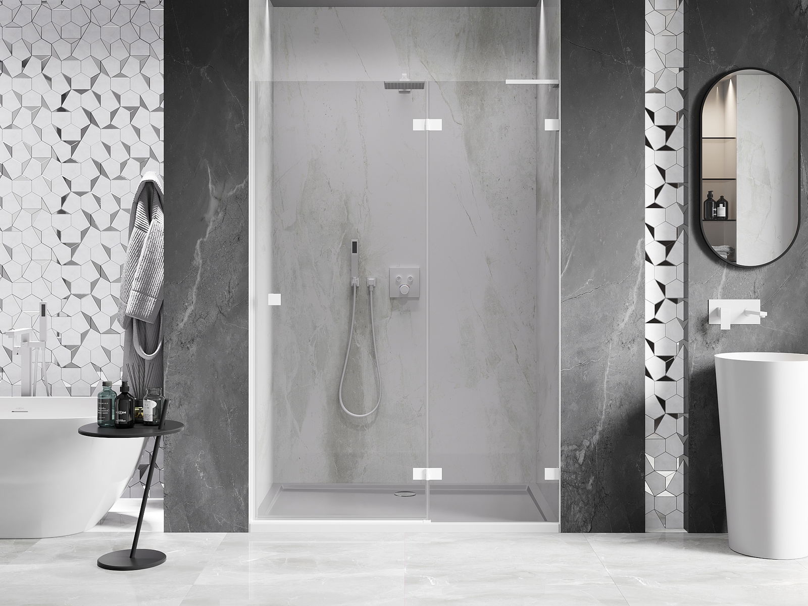 Mexen Lunar L drzwi prysznicowe uchylne prawe 130 cm, transparent, białe - 834L-130-000-20-00-P