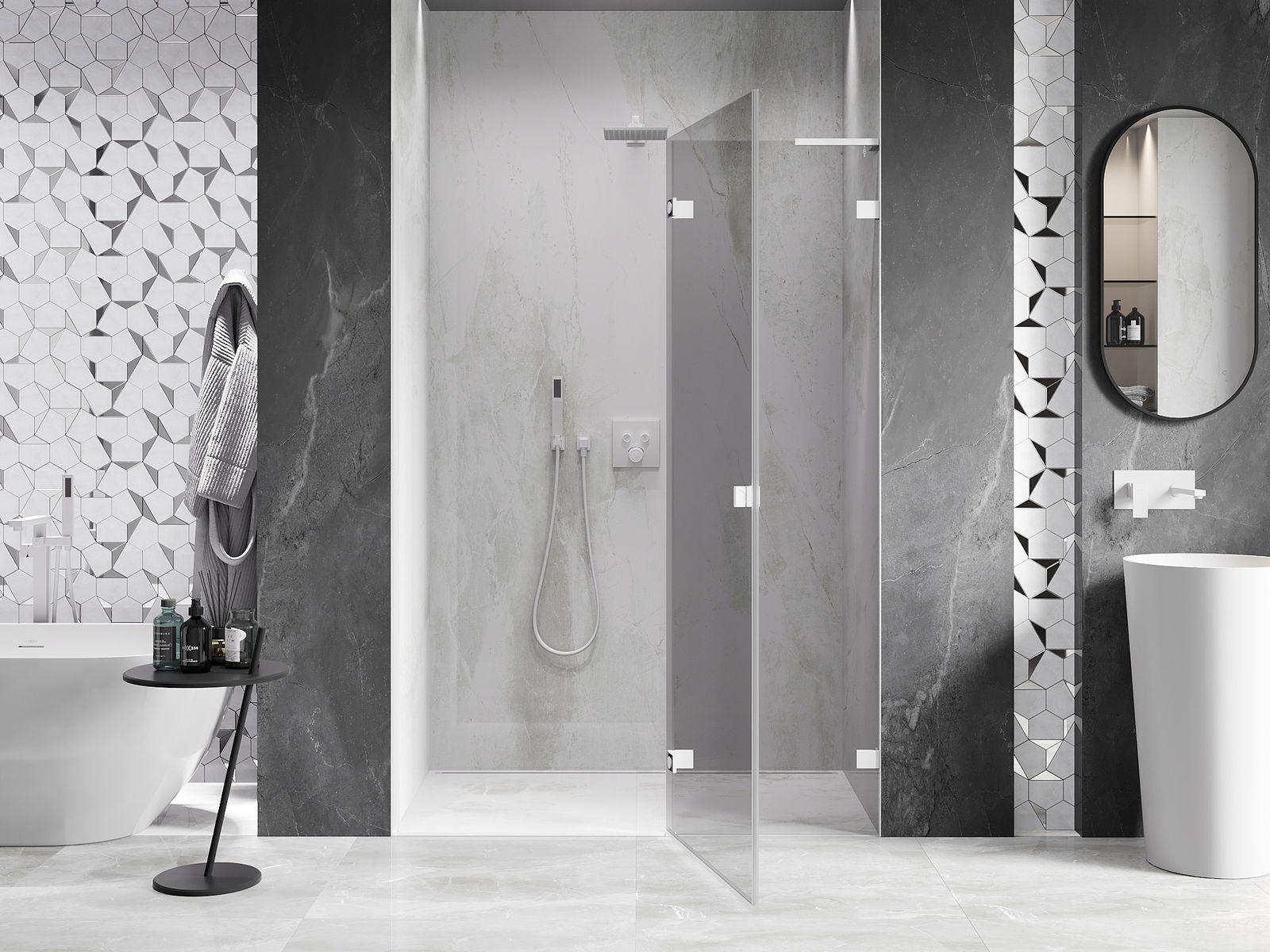 Klamry i zawiasy zostały wykonane z bardzo trwałego mosiądzu, a dodatkowo tworzą zlicowaną taflę szkła. Jest to doskonały wybór, który łączy elegancję, trwałość i nowoczesny design. Dzięki takim rozwiązaniom prysznic zyskuje na estetyce, a jednocześnie ułatwiają utrzymanie czystości.