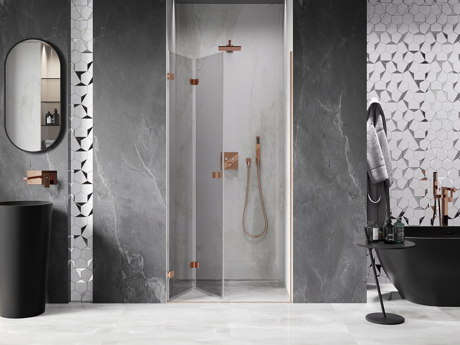 Mexen Lunar-F drzwi prysznicowe składane lewe 100 cm, transparent, miedź szczotkowana - 836-100-000-65-00-L