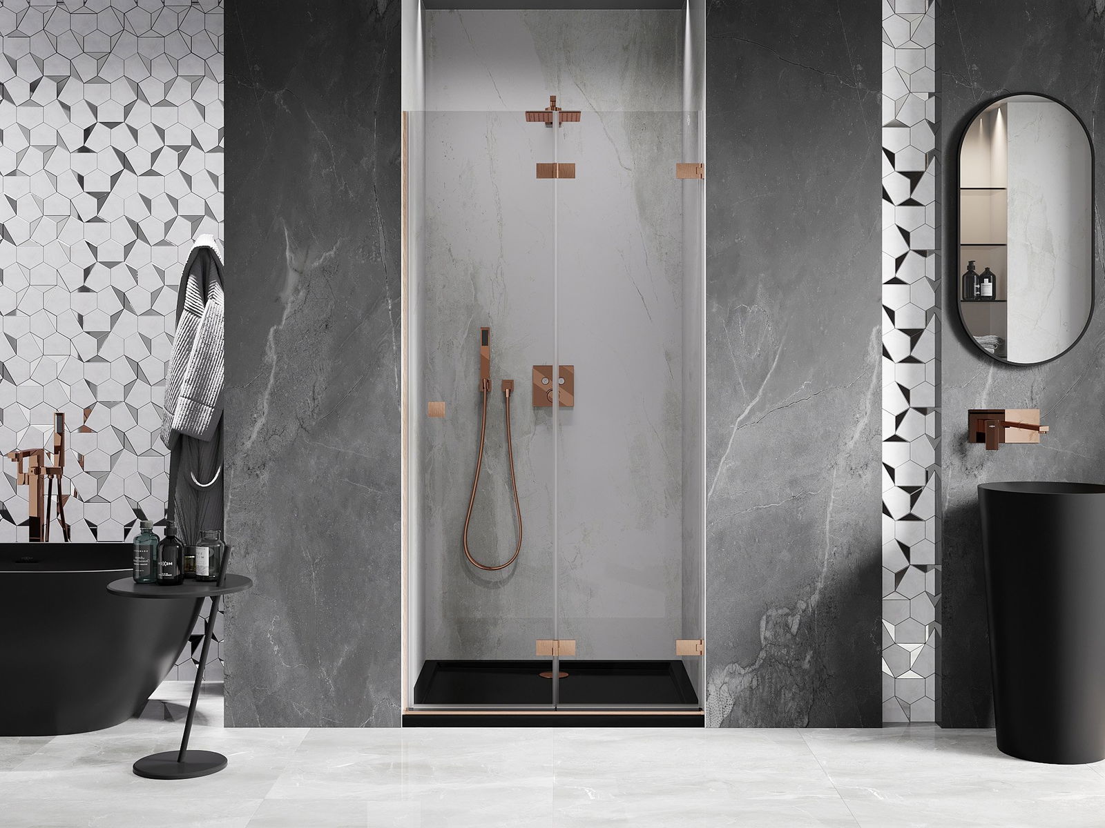 Mexen Lunar-F drzwi prysznicowe składane prawe 80 cm, transparent, miedź szczotkowana - 836-080-000-65-00-P