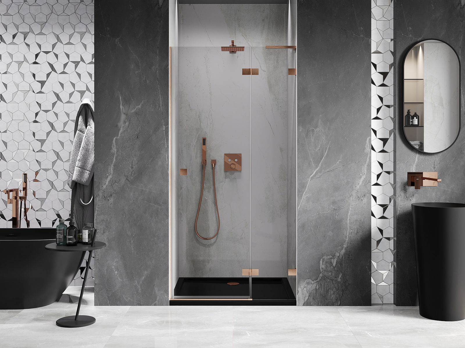 Mexen Lunar L drzwi prysznicowe uchylne prawe 125 cm, transparent, miedź szczotkowana - 834L-125-000-65-00-P