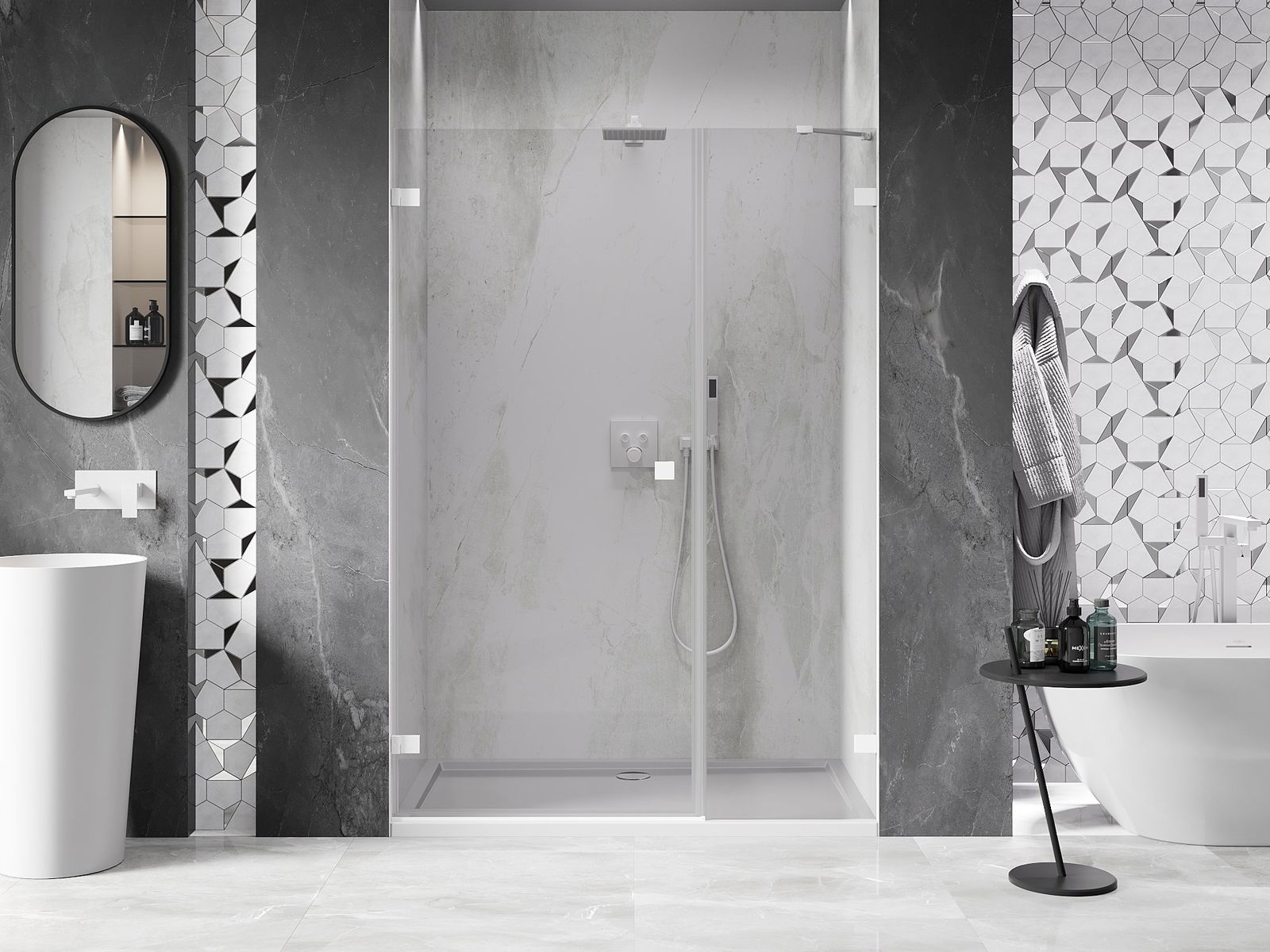 Mexen Lunar-B drzwi prysznicowe uchylne lewe 140 cm, transparent, białe - 832S-140-050-20-00-L