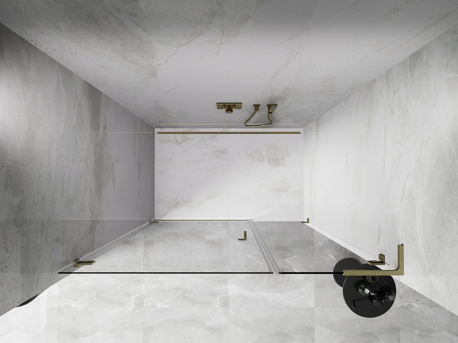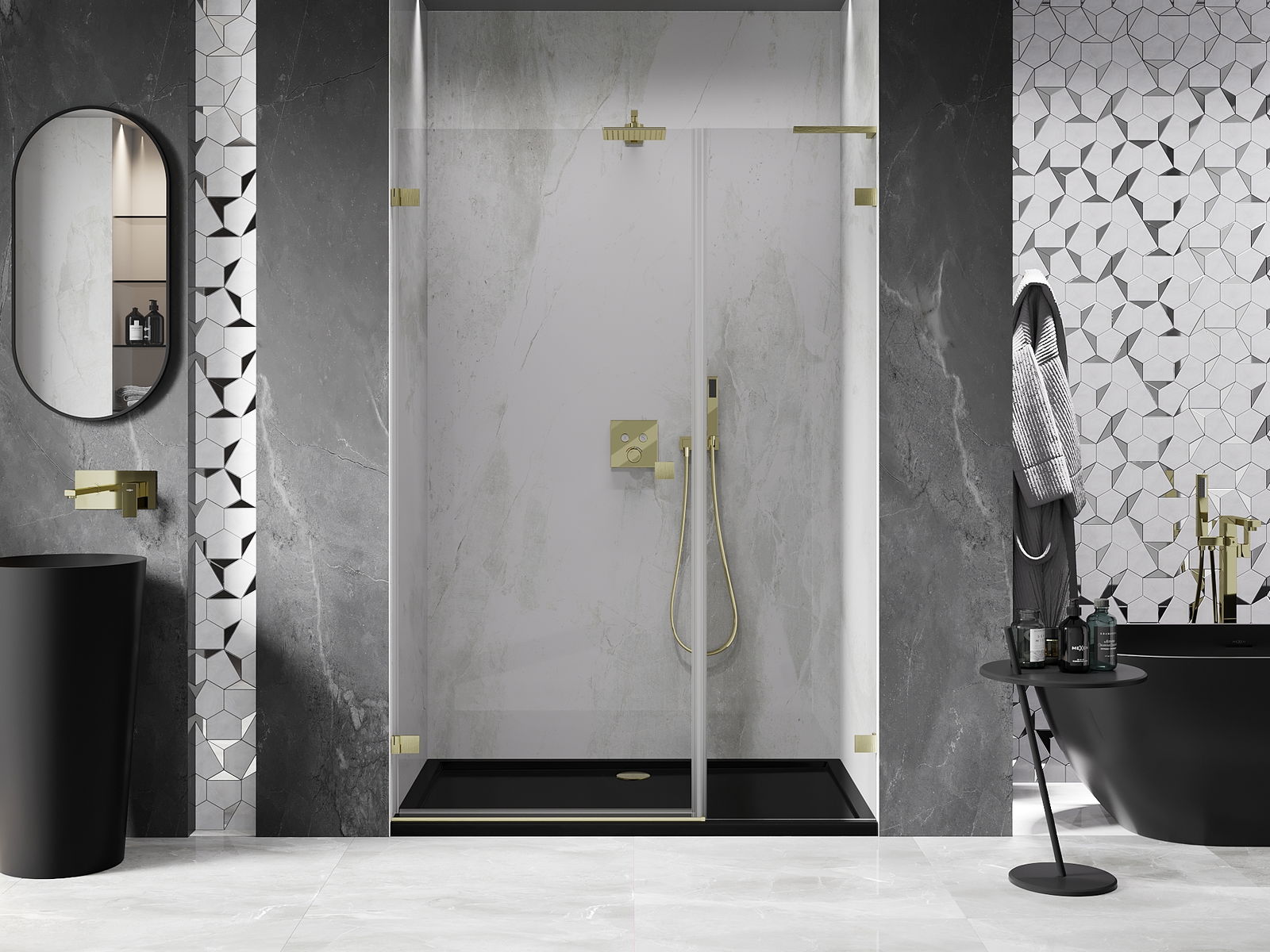Mexen Lunar-B L drzwi prysznicowe uchylne lewe 140 cm, transparent, złote szczotkowane - 832SL-140-050-55-00-L