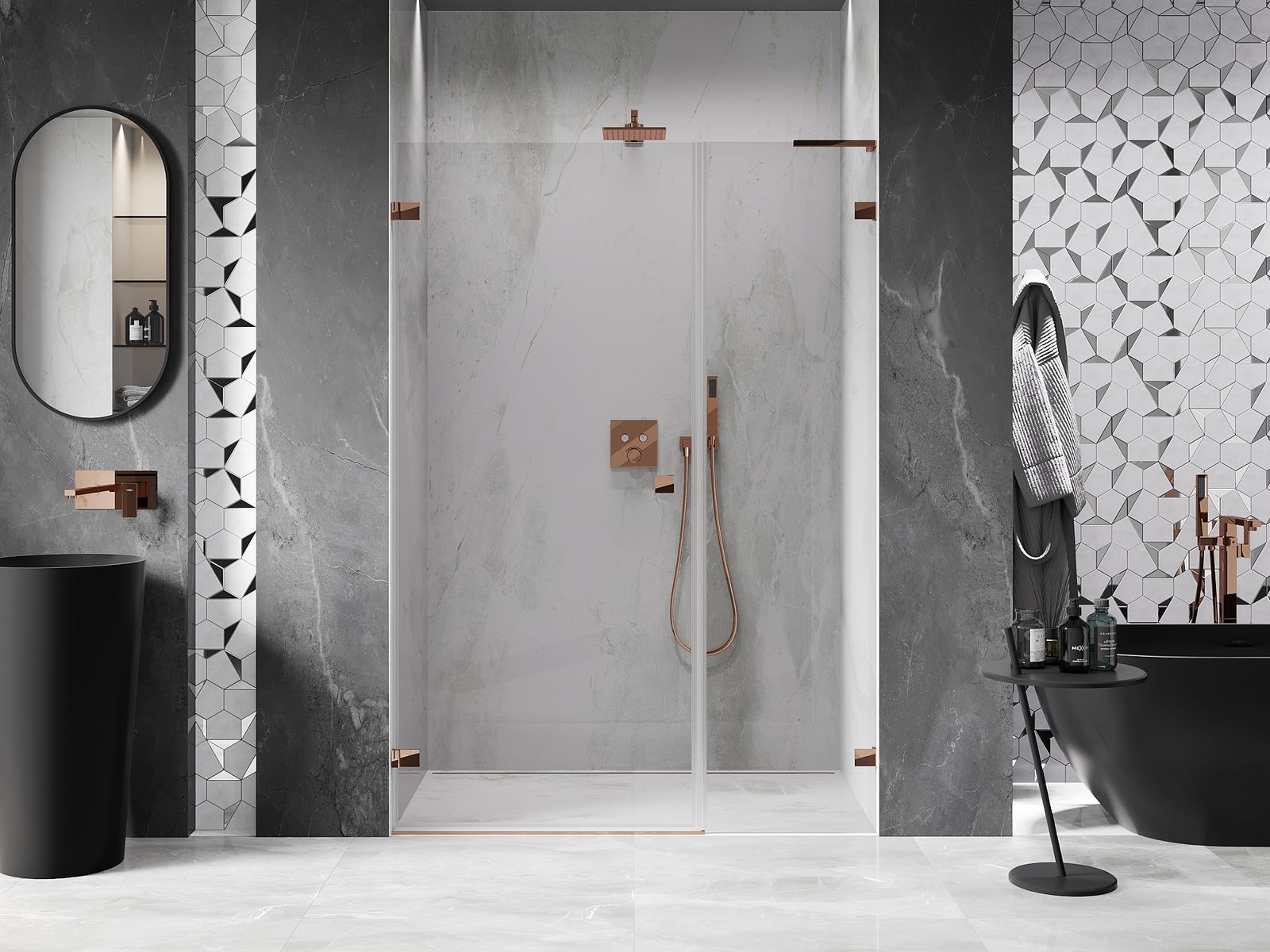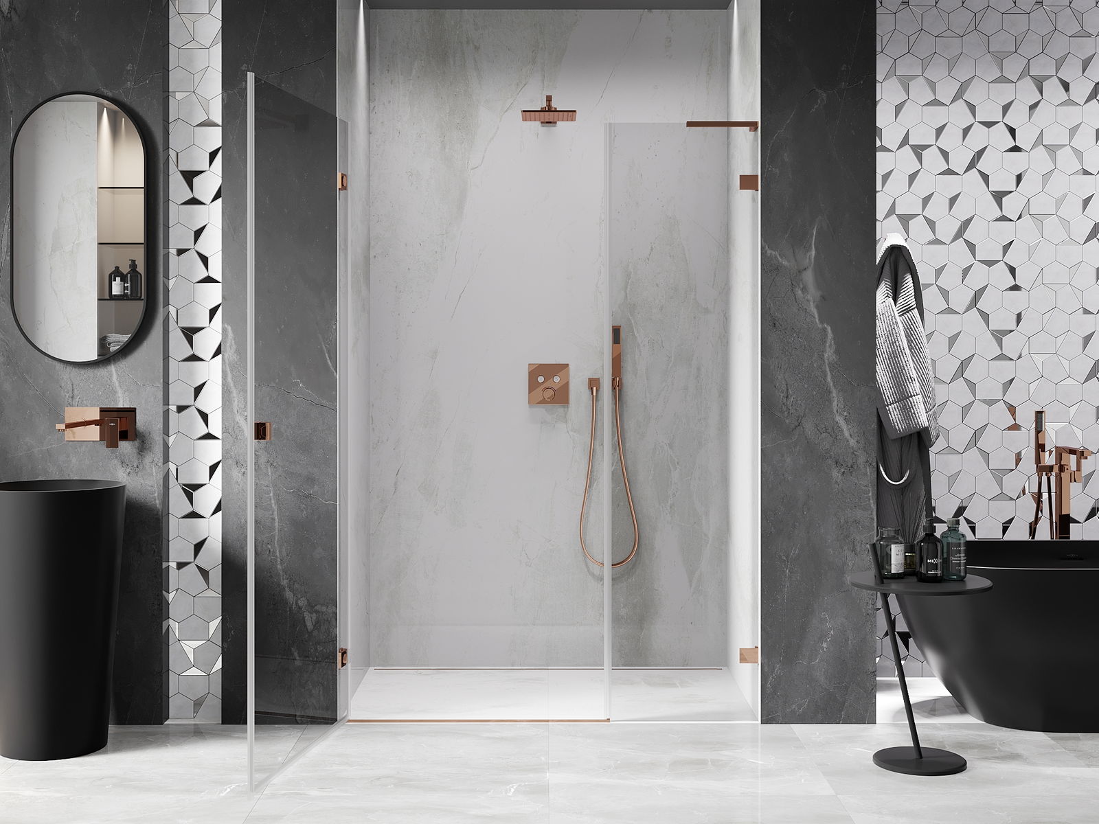 Klamry zostały wykonane z bardzo trwałego mosiądzu, a dodatkowo tworzą zlicowaną taflę szkła. Jest to doskonały wybór, który łączy elegancję, trwałość i nowoczesny design. Dzięki takim rozwiązaniom prysznic zyskuje na estetyce, a jednocześnie ułatwiają utrzymanie czystości.