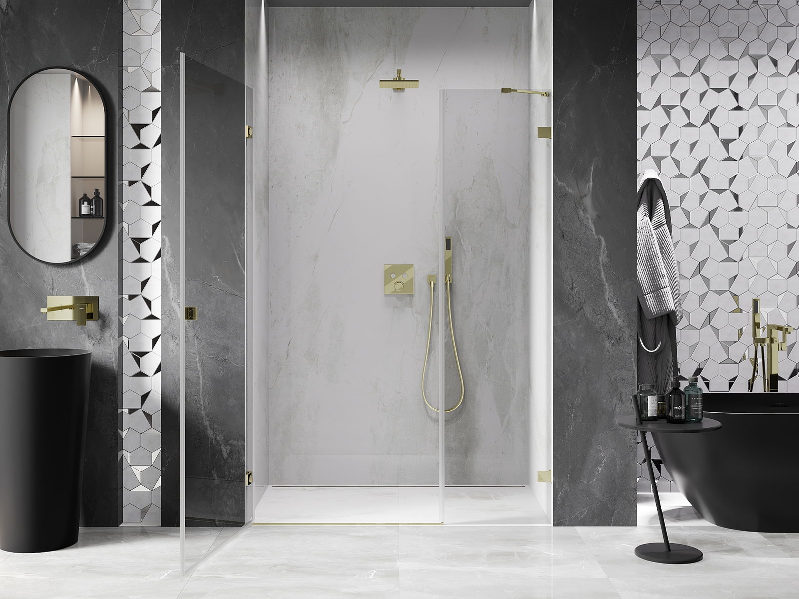 Klamry zostały wykonane z bardzo trwałego mosiądzu, a dodatkowo tworzą zlicowaną taflę szkła. Jest to doskonały wybór, który łączy elegancję, trwałość i nowoczesny design. Dzięki takim rozwiązaniom prysznic zyskuje na estetyce, a jednocześnie ułatwiają utrzymanie czystości.