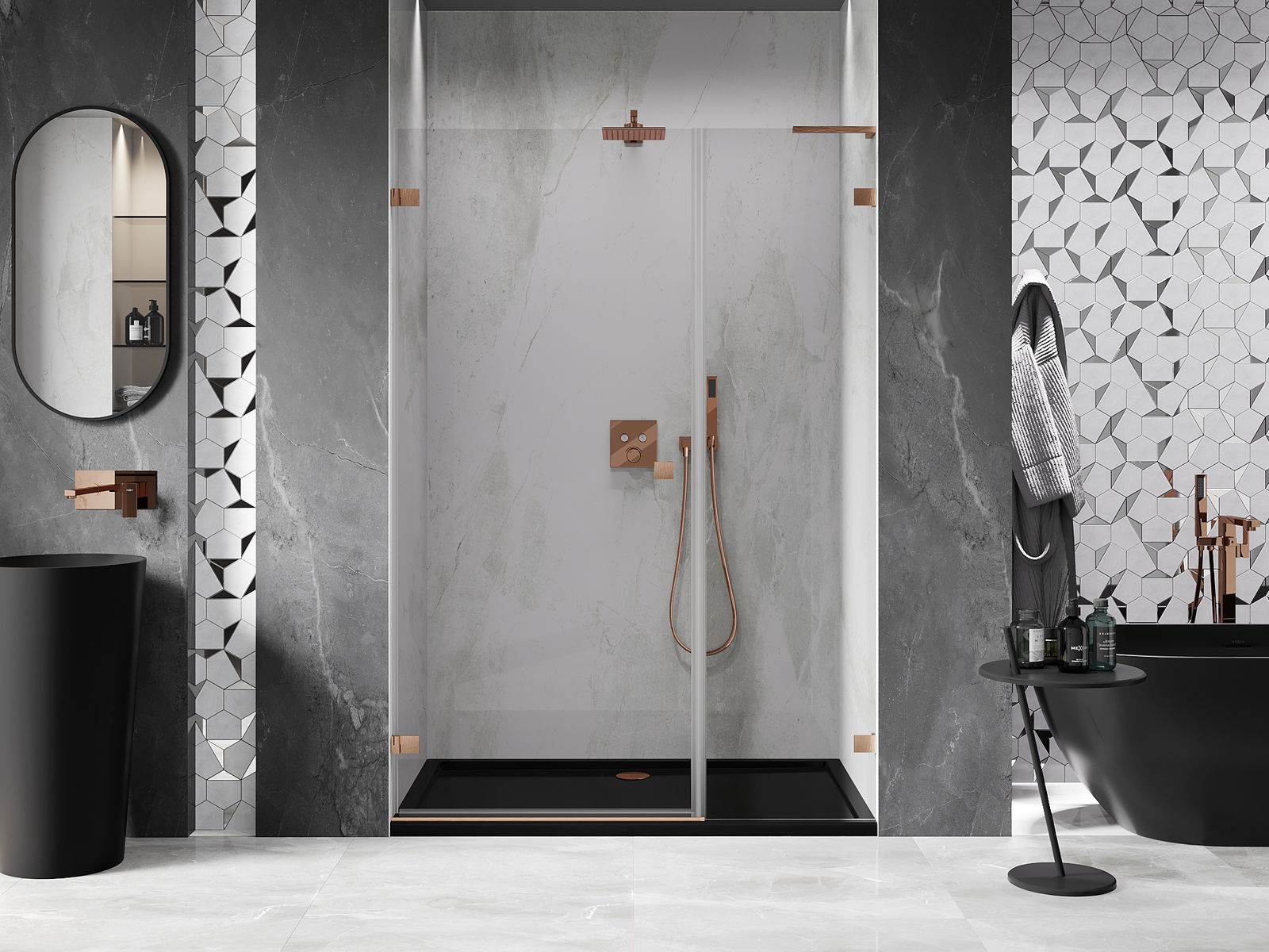 Mexen Lunar-B L drzwi prysznicowe uchylne lewe 130 cm, transparent, miedź szczotkowana - 832SL-130-050-65-00-L