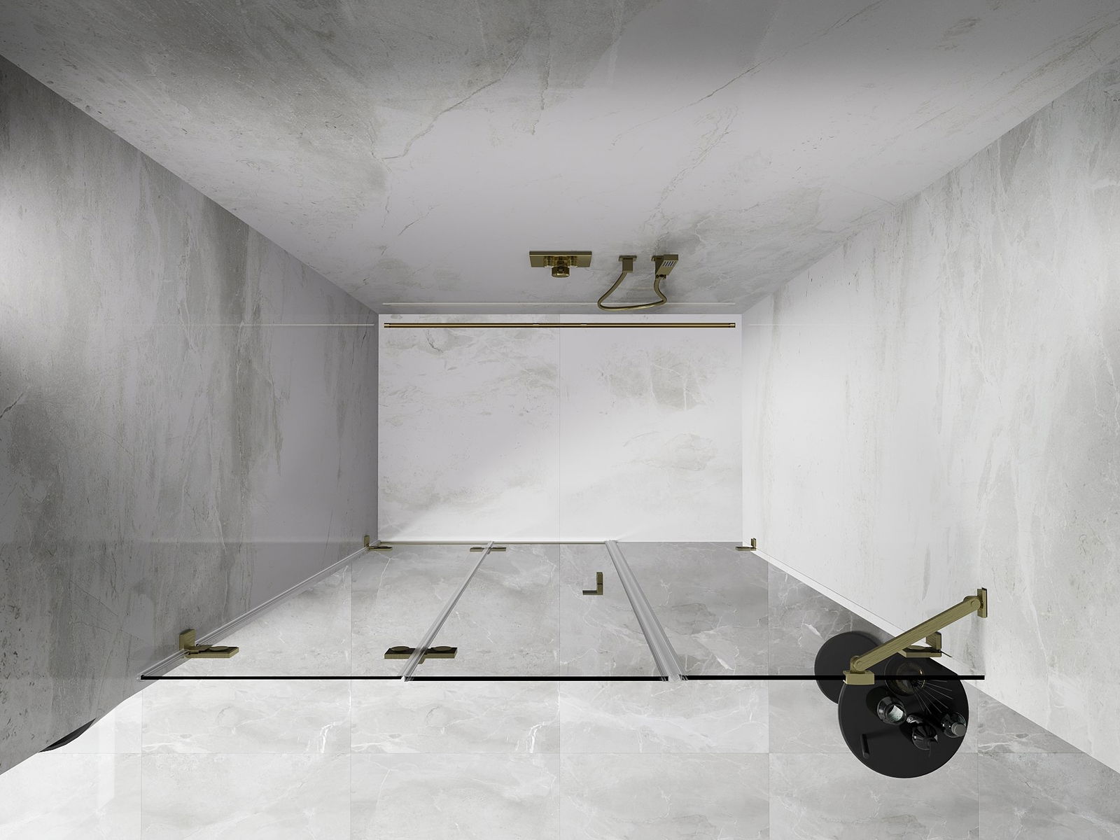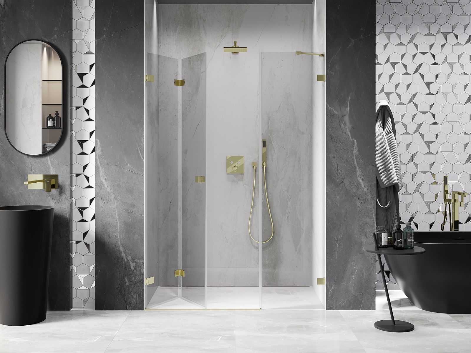 Mexen Lunar-F drzwi prysznicowe składane lewe 135 cm, transparent, złote szczotkowane - 836S-135-050-55-00-L