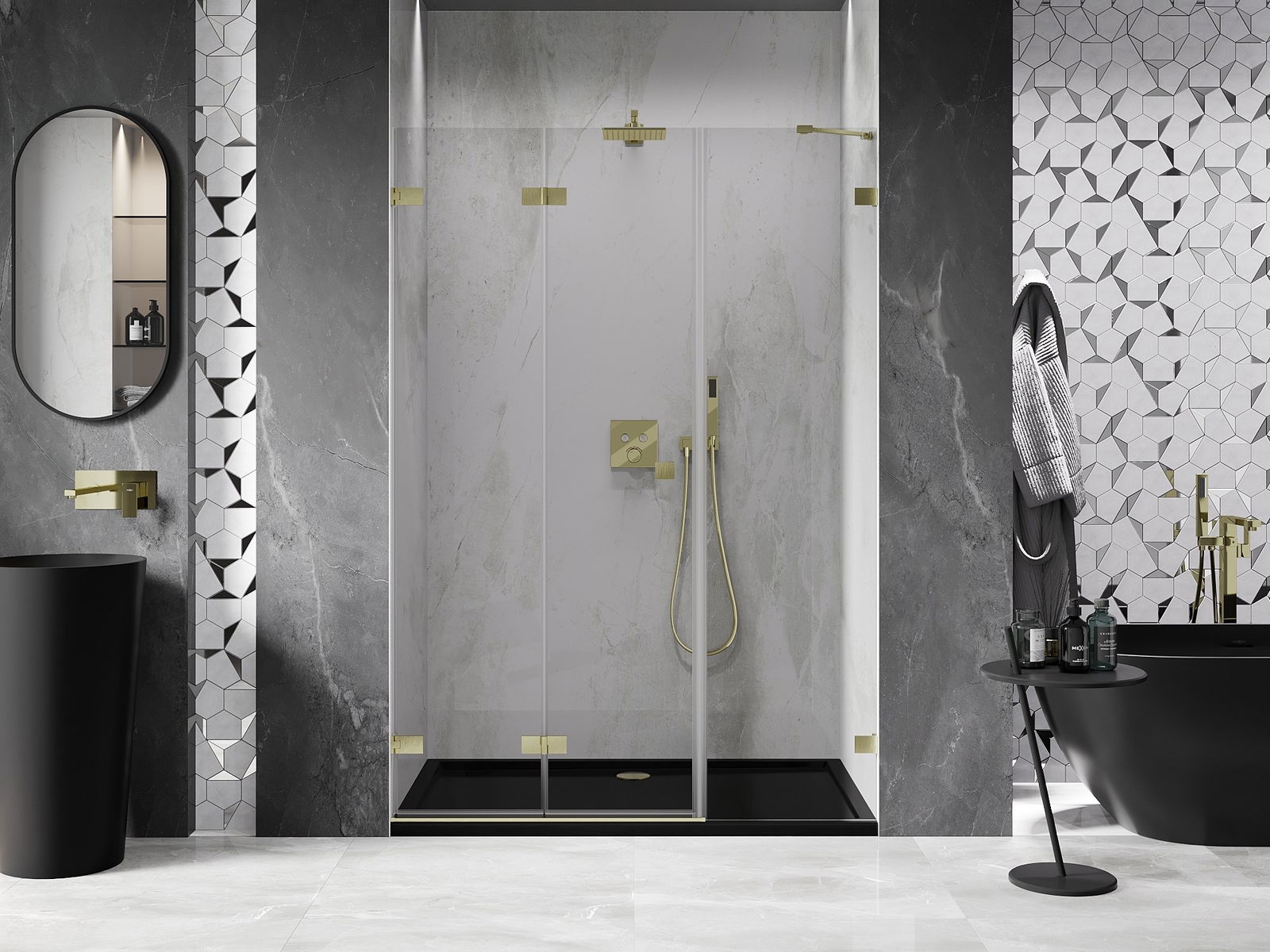 Mexen Lunar-F drzwi prysznicowe składane lewe 150 cm, transparent, złote szczotkowane - 836S-150-050-55-00-L