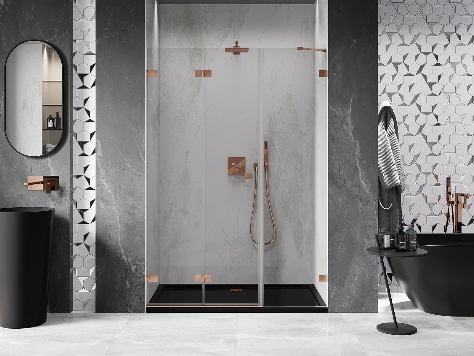 Mexen Lunar-F drzwi prysznicowe składane lewe 115 cm, transparent, miedź szczotkowana - 836S-115-050-65-00-L