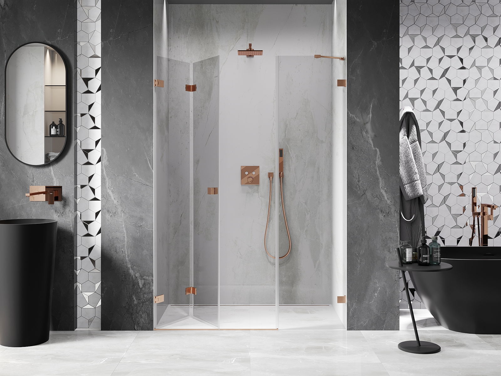 Mexen Lunar-F drzwi prysznicowe składane lewe 150 cm, transparent, miedź szczotkowana - 836S-150-050-65-00-L