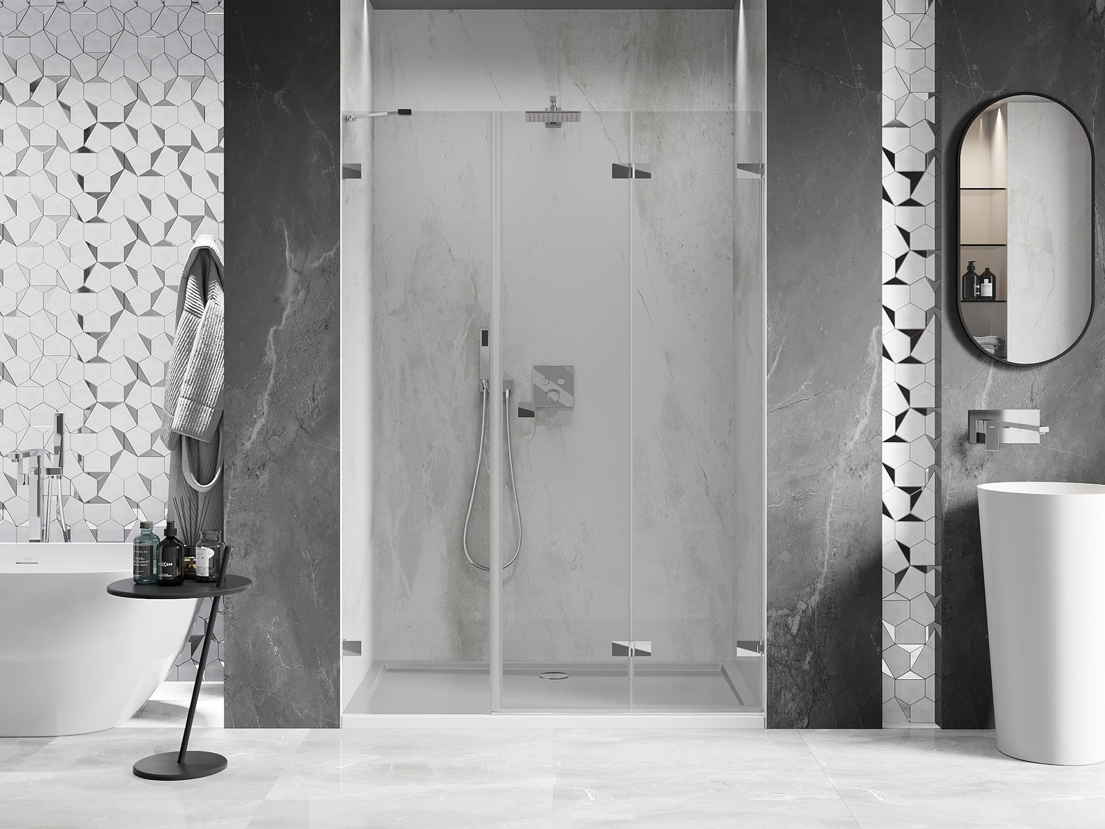 Możliwość składania drzwi, zarówno do zewnątrz, jak i do wewnątrz, pozwala uzyskać więcej przestrzeni podczas niekorzystania z prysznica. Jest to idealne rozwiązanie do mniejszych łazienek, maksymalnie wykorzystujące dostępną powierzchnię.
