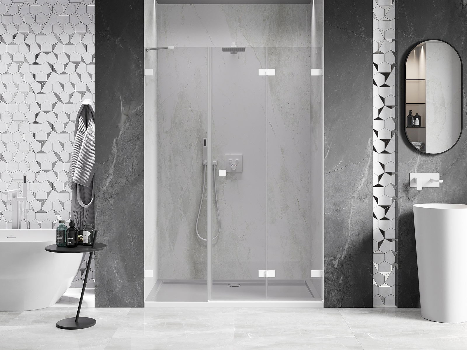 Mexen Lunar-F drzwi prysznicowe składane prawe 130 cm, transparent, białe - 836S-130-050-20-00-P