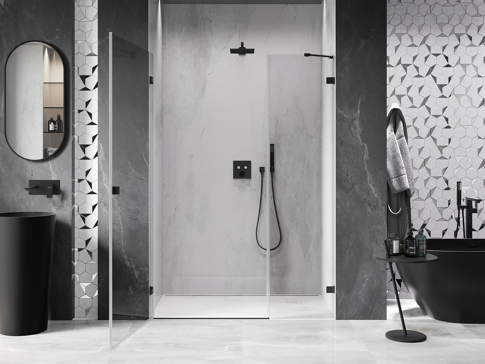 Mexen Lunar-B drzwi prysznicowe uchylne lewe 135 cm, transparent, czarne - 832S-135-050-70-00-L