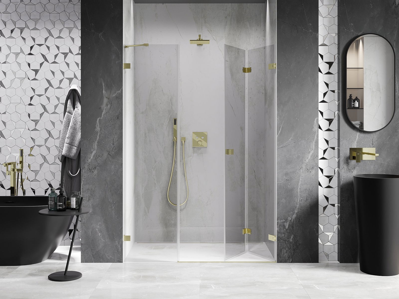 Mexen Lunar-F drzwi prysznicowe składane prawe 130 cm, transparent, złote szczotkowane - 836S-130-050-55-00-P