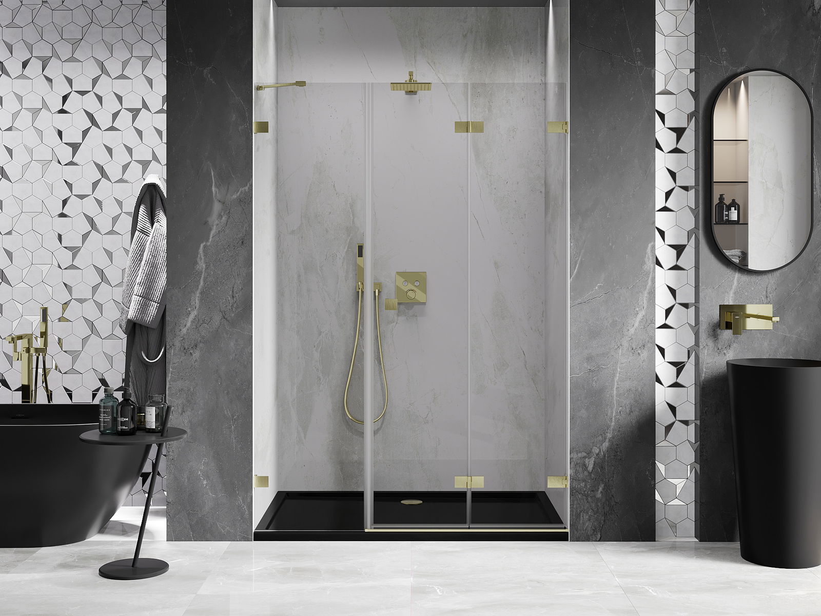 Mexen Lunar-F drzwi prysznicowe składane prawe 135 cm, transparent, złote szczotkowane - 836S-135-050-55-00-P
