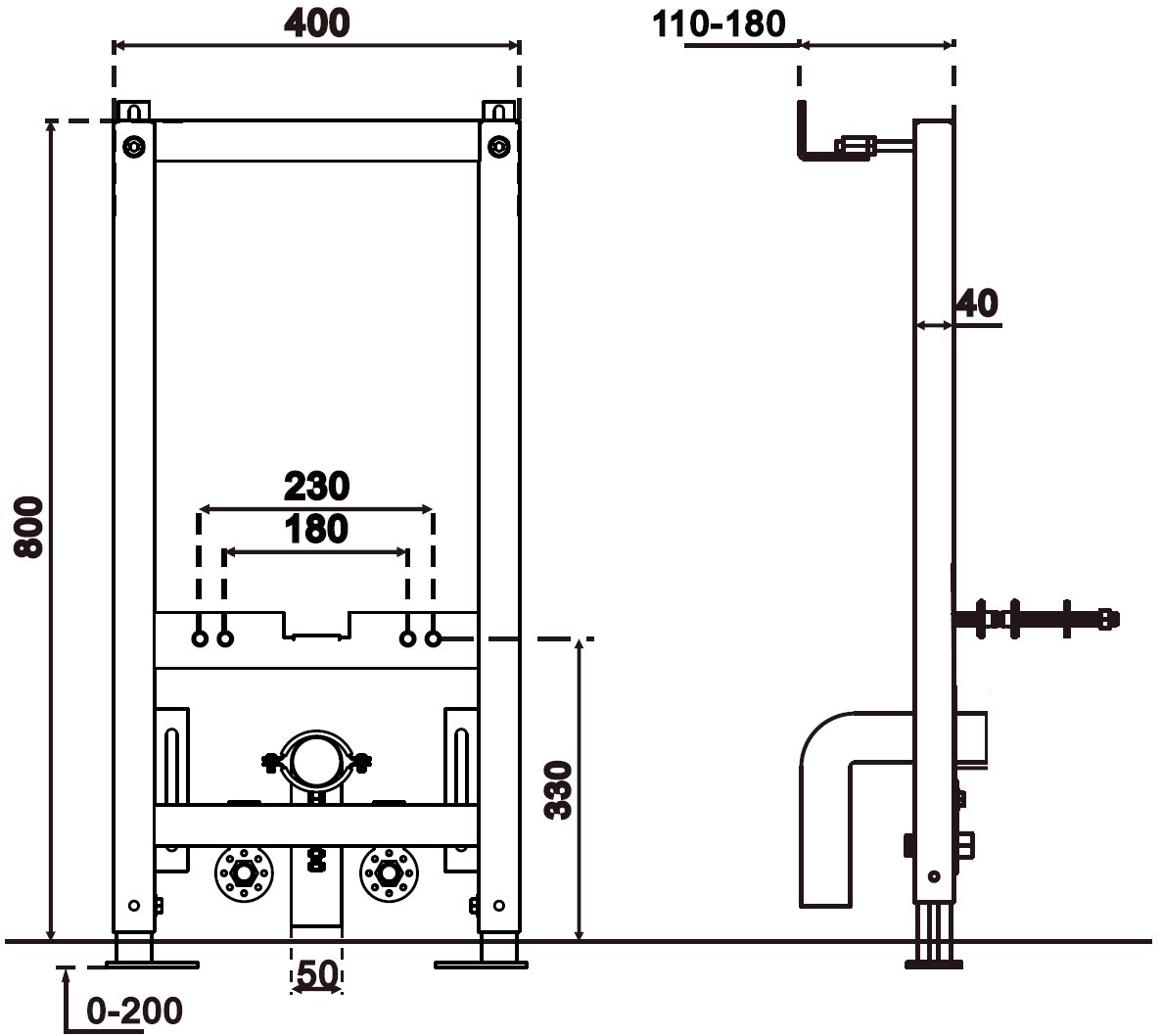 Stelaż podtynkowy został wykonany ze stalowych profili oraz dodatkowo wzmocniony pionowymi wspornikami. Dzięki temu charakteryzuje się wysoką wytrzymałością na duże obciążenia, gwarantując bezpieczeństwo użytkowania przez długie lata.