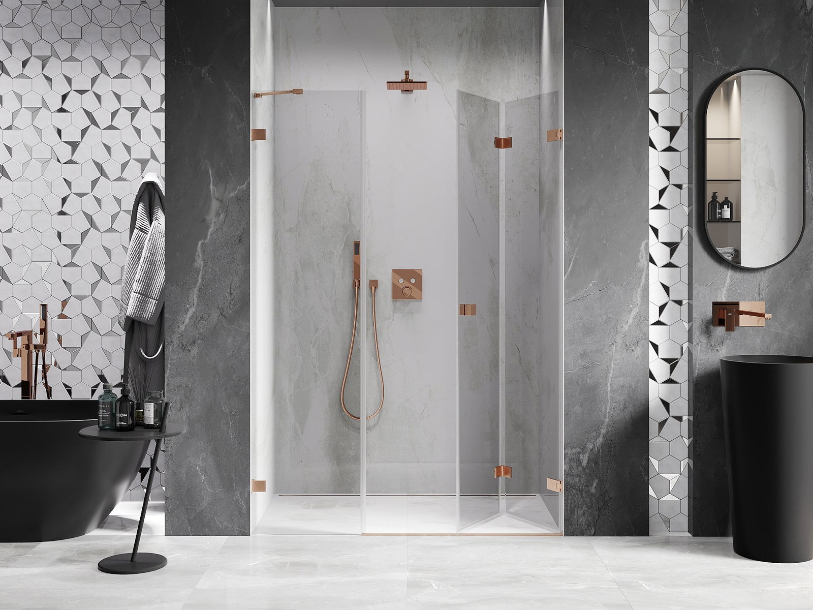 Mexen Lunar-F drzwi prysznicowe składane prawe 130 cm, transparent, miedź szczotkowana - 836S-130-050-65-00-P